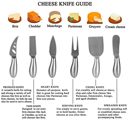Home Perspective Premium 6-Piece Cheese Knife Set - Complete Stainless Steel Cheese Knives Gift Knives Sets Collection, Suit for the Wedding, Lover, Elders, Children and Friends