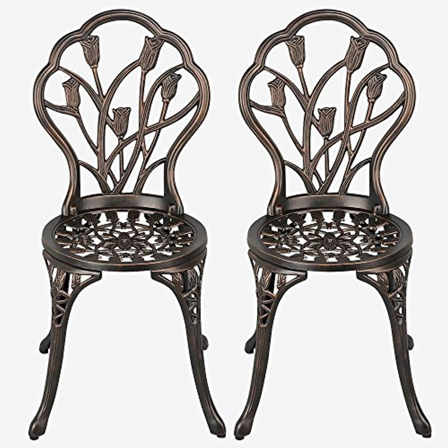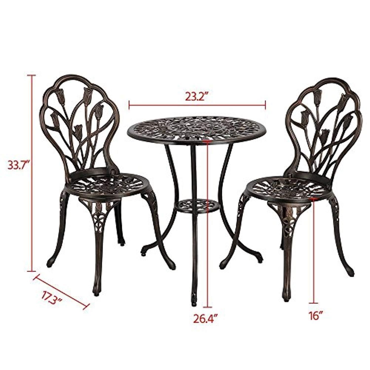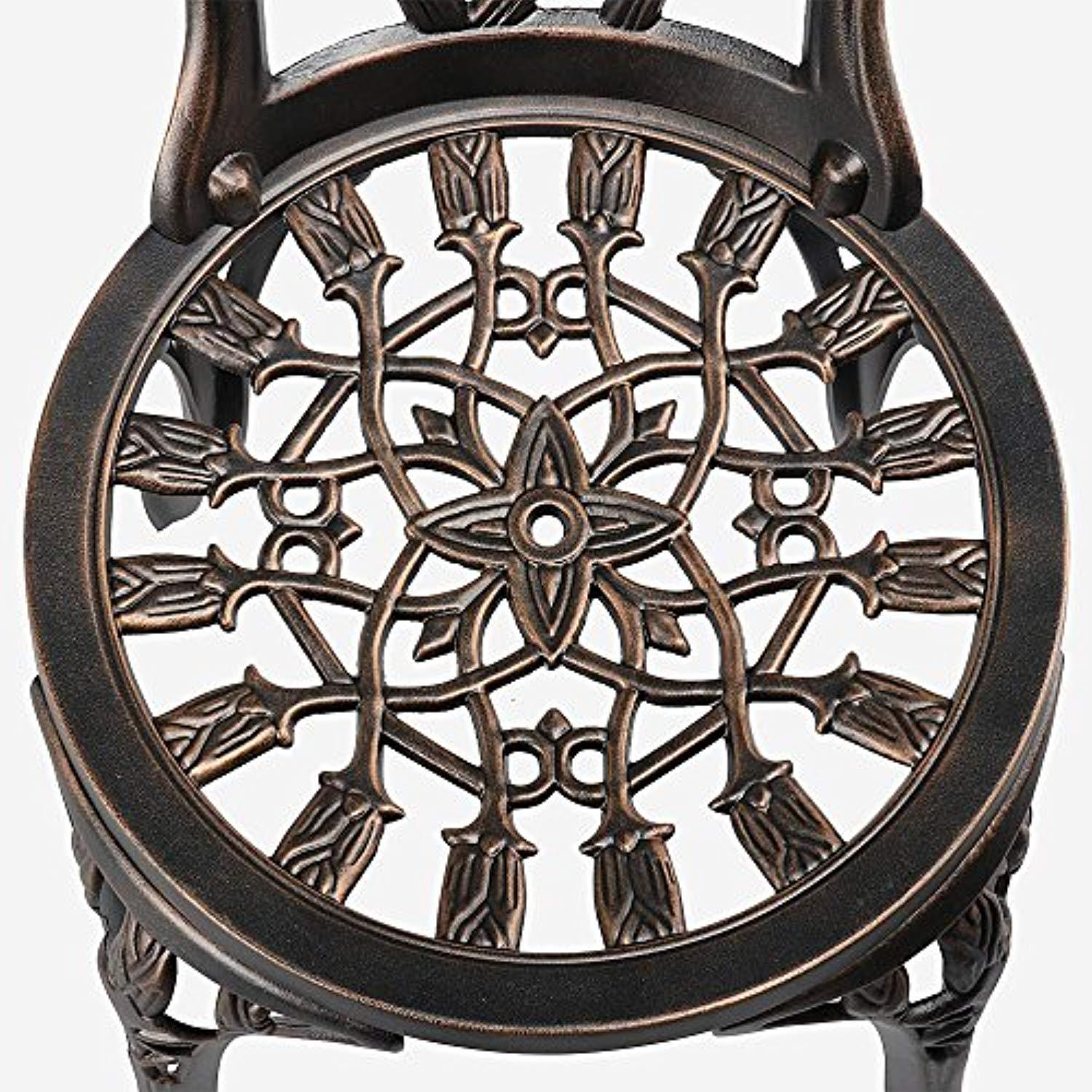 HOMEFUN Bistro Table Set, Outdoor Patio Set 3 Piece Table and Chairs, Tulip Carving and Weather Resistant (Antique Bronze)
