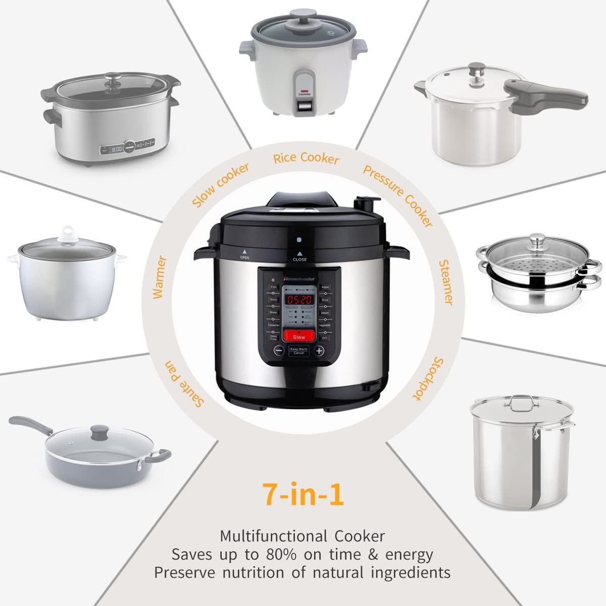 Homeleader 6 Quart 7-in-1 Multi-Use Programmable Pressure Cooker, Pressuer Cooker,Slow Cooker,Rice Cooker, Steamer, Sauté, Soup Maker and Warmer