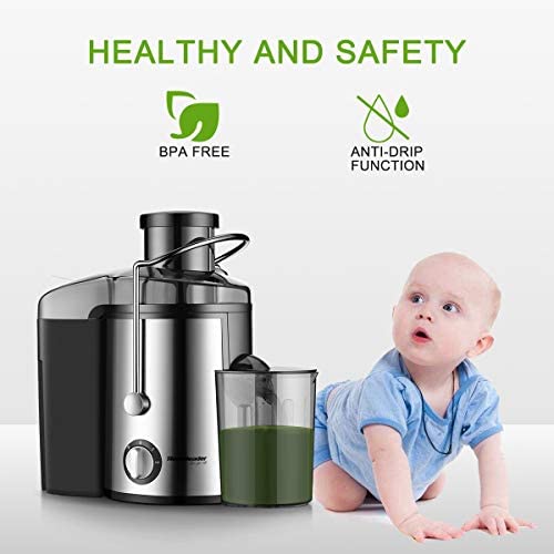 🍹STRONG MOTOR: Powered by 600W motor, "p" To fastest speed, "I" Low speed, "II" Fast speed. 3 speed control Maximizes juice yield from soft, leafy greens and hard fruits.																				🍹MORE EFFICIENT:With 304 stainless steel blade and mesh filter basket. 80°chopping blades for higher juice. More efficient juicer to extract up to 20% more juice and 30% more vitamins and minerals.