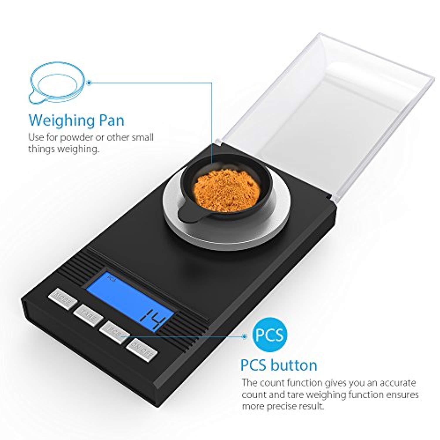 Homgeek Digital Milligram Pocket Scale Mini Jewelry Gold Powder Weigh Scales with Calibration Weights Tweezers, Weighing Pans, LCD Display