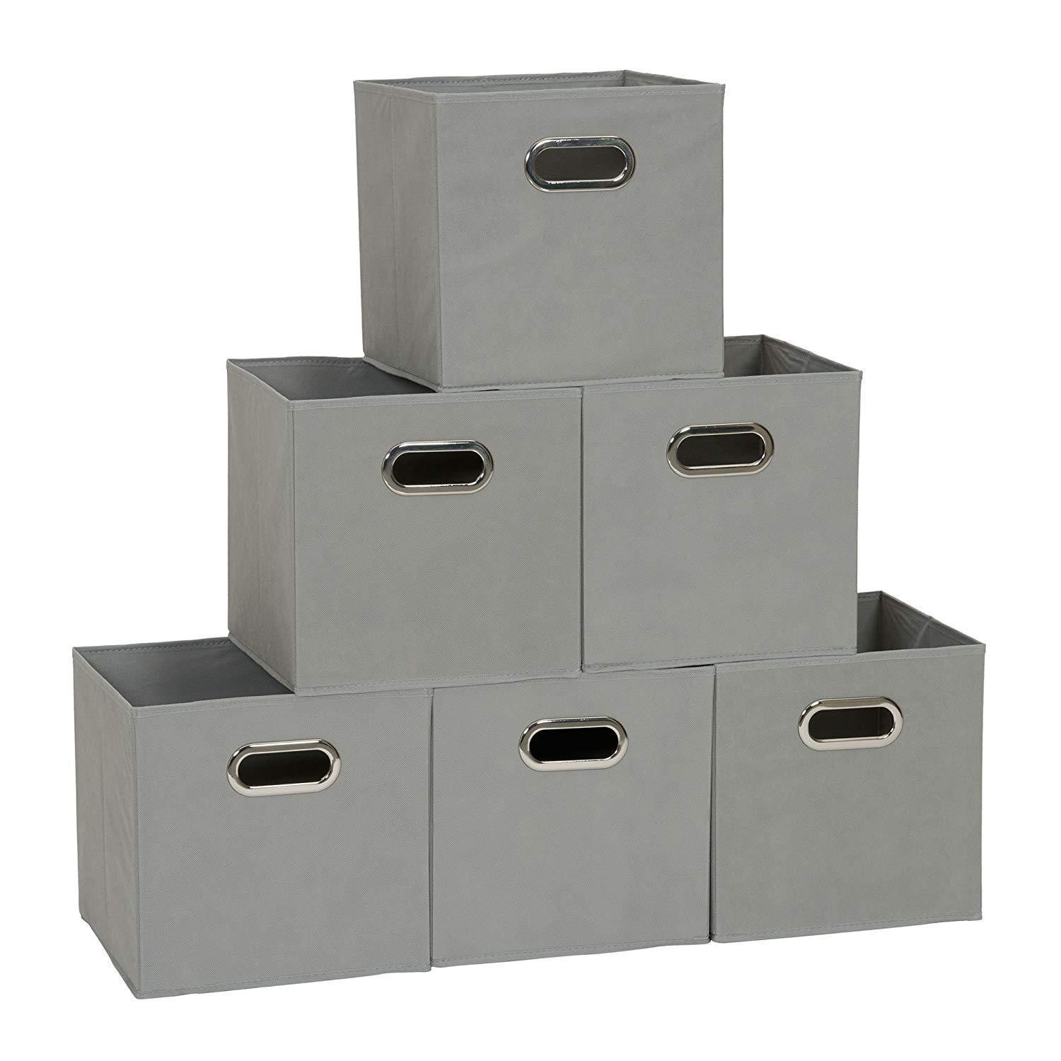 Household Essentials 84-1 Foldable Fabric Storage Bins | Set of 6 Cubby Cubes with Handles | Teafog, 6 lbs, Grey