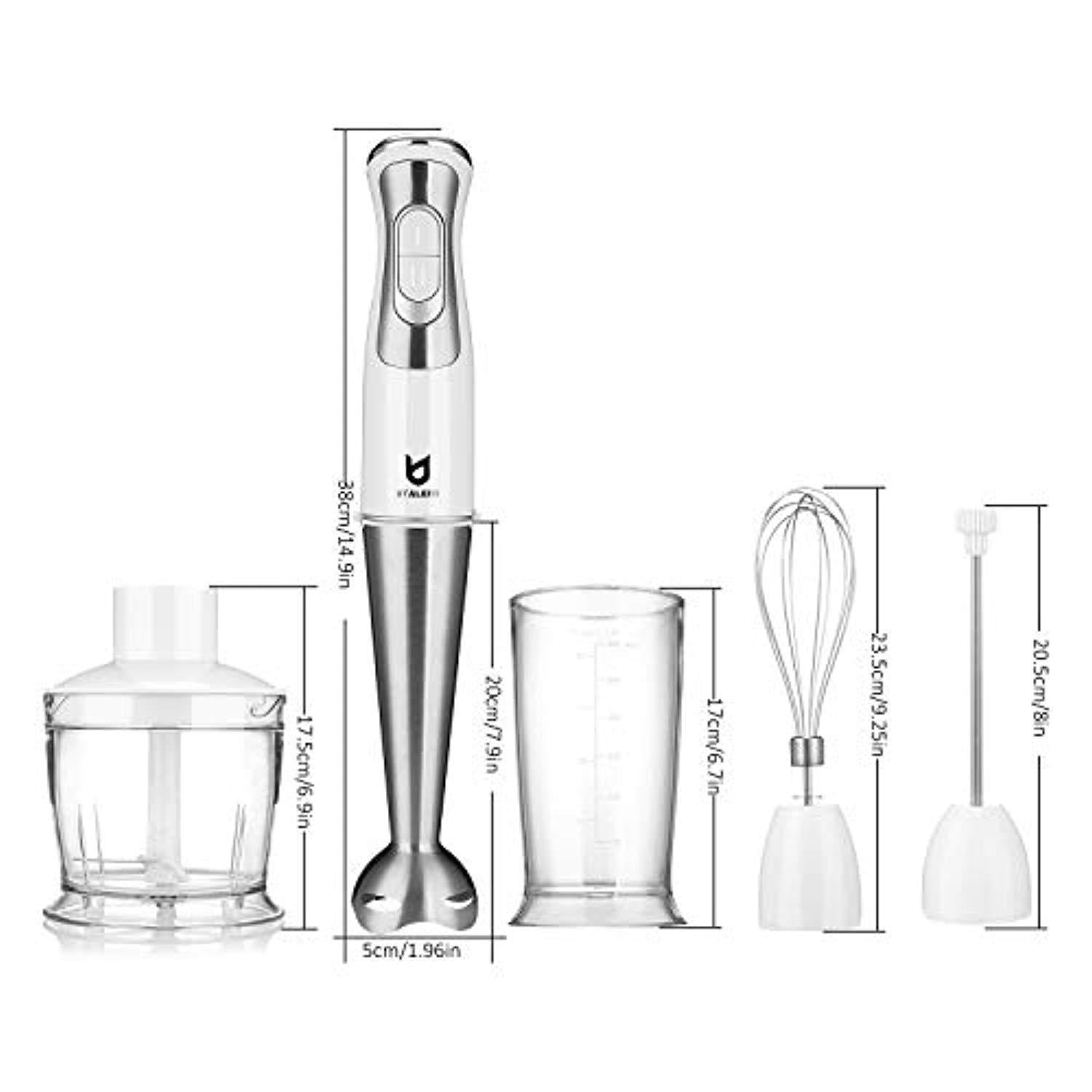5-in-1 ATTACHMENT & WARRANTY: mixing wand, milk frother, 500ml Food Chopper, 600ml Beaker, Egg Whisk with 2-year warranty.