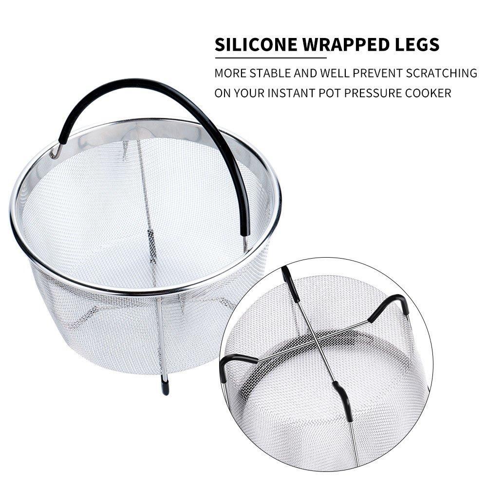 Instant Pot Accessories 6 and 8 qt Steamer Basket, Fits InstaPot Pressure Cooker, Insta Pot Ultra Egg Basket w/Silicone Handle and Non-Slip Legs (Instant Pot 6 and 8 Quart) by UNIQUE IMPRESSION