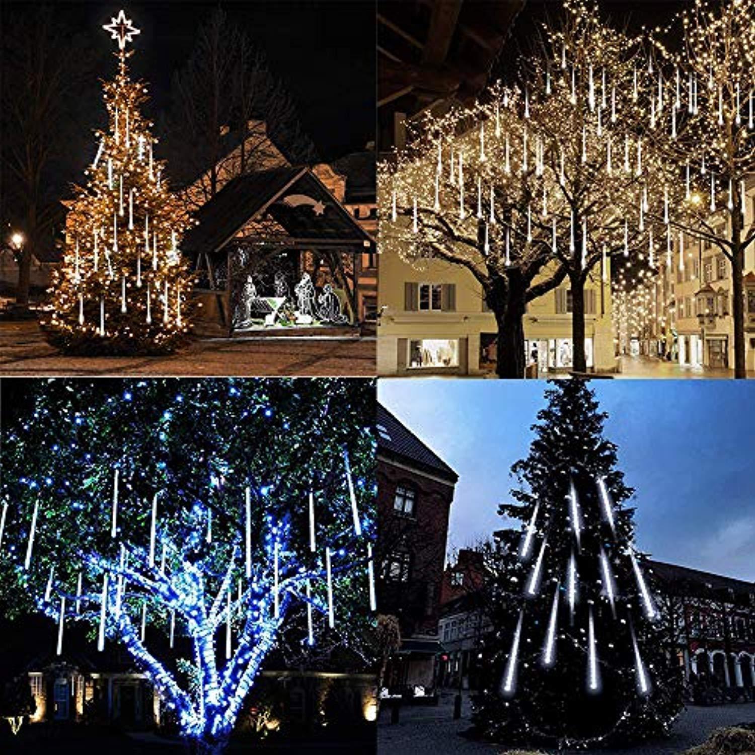 Invin LED Meteor Shower Lights, Falling Rain Lights, Christmas Lights 30cm 8 Tube 144 LEDs, Falling Rain Drop Icicle String Lights for Christmas Tree Halloween Decoration Holiday Party Wedding (White)