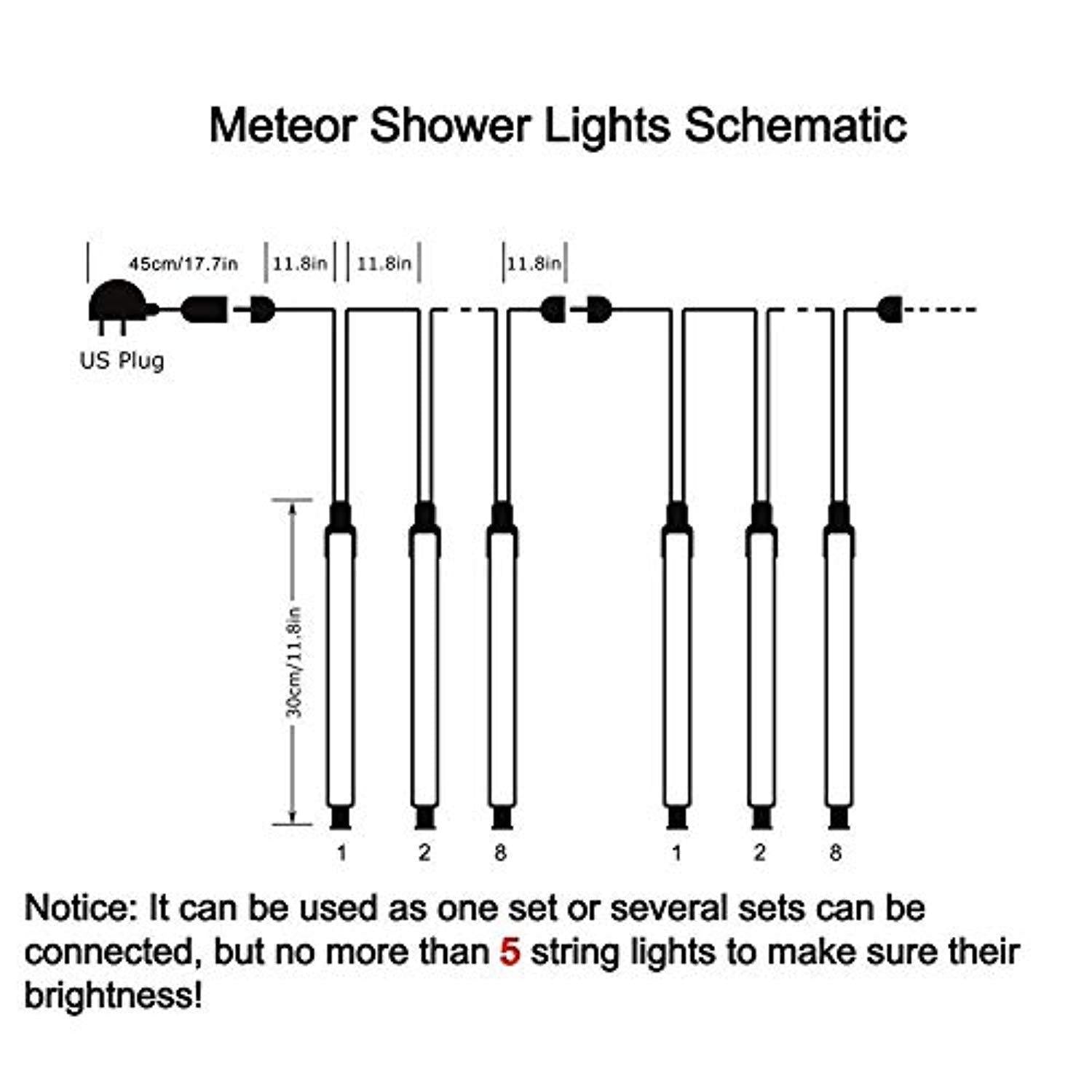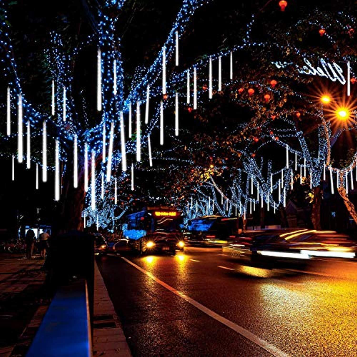 Invin LED Meteor Shower Lights, Falling Rain Lights, Christmas Lights 30cm 8 Tube 144 LEDs, Falling Rain Drop Icicle String Lights for Christmas Tree Halloween Decoration Holiday Party Wedding (White)