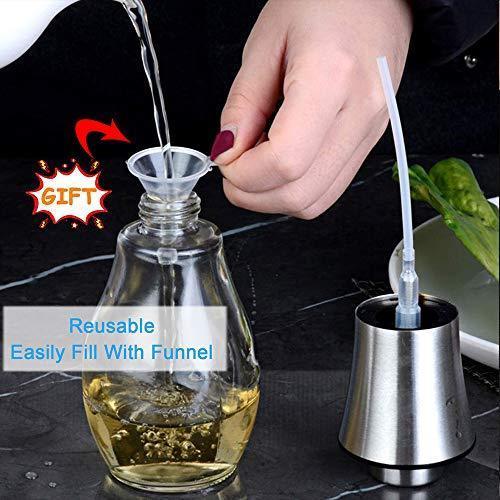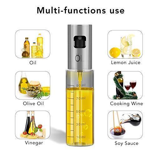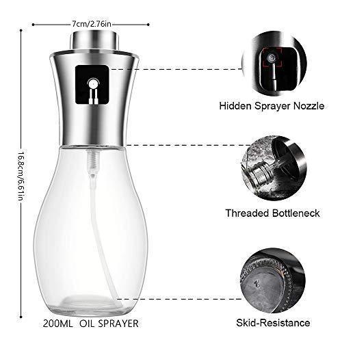 【FDA CERTIFICATION】Made from premium 304 stainless steel and glass, we ensure that the oil sprayer is completely BPA-free and eco-friendly, 100% food safety degree. 【MULTI-PURPOSE USE】 Fill the sprayer with oils/ salad oil/ sunflower oil/ olive oil/ vinegar/ soy sauce/ lemon juice/ cooking sherry wine, etc. Perfect for spraying when roasting, sauteing, baking, cooking, frying. 【HANDY TO USE】Simplely pumping action produces a fine mist to control the amount of seasoning used. With transparent and scale design, And you can recognize the remaining seasoning (oil/vinegar/sauce)quickly. Come with a funnel, this oil sprayer is reusable and easy to fill with the funnel, never drops the oil when filling 【CARRY PORTABLE】This essential oil sprayer with handled and proper size(6.76 oz capacity) can be carried outside for BBQ, picnic, party, grilling etc. 【GUARANTEE】If you have any quality problems, we will refund or replacement and process your problem within 24 hours.