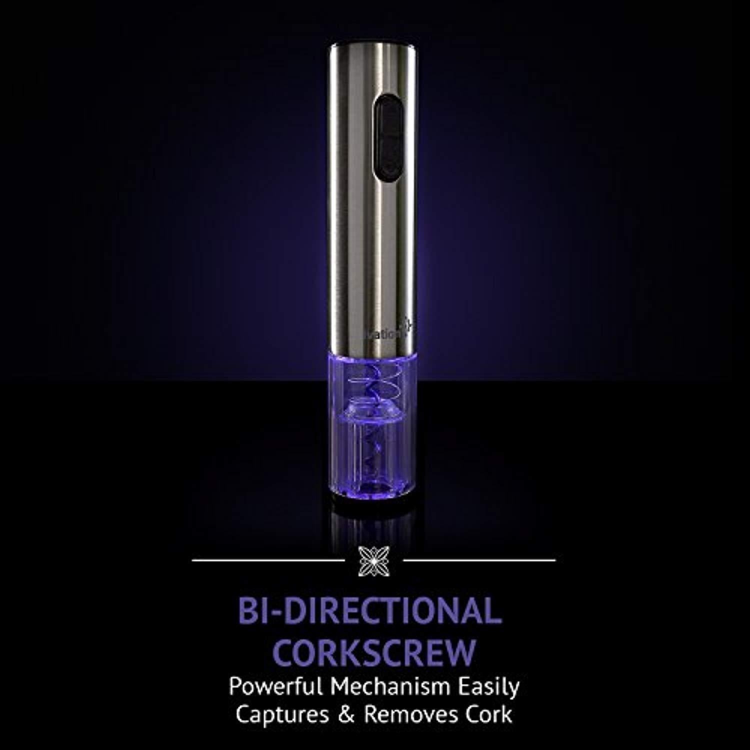 ELECTRIC CORKSCREW EXTRACTOR – Stainless Steel Touch-Button Opener Removes Up to 30 Corks on a Full Charge; See-Through Window for Easy Viewing