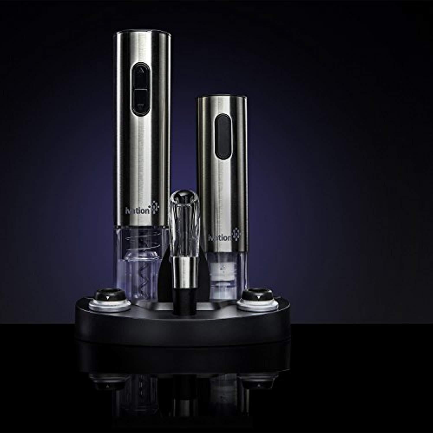 Ivation Wine Gift Set, Includes Stainless Steel Electric Wine Bottle Opener, Wine Aerator, Electric Vacuum Wine Preserver, 2 Bottle Stoppers, Foil Cutter & LED Charging Base