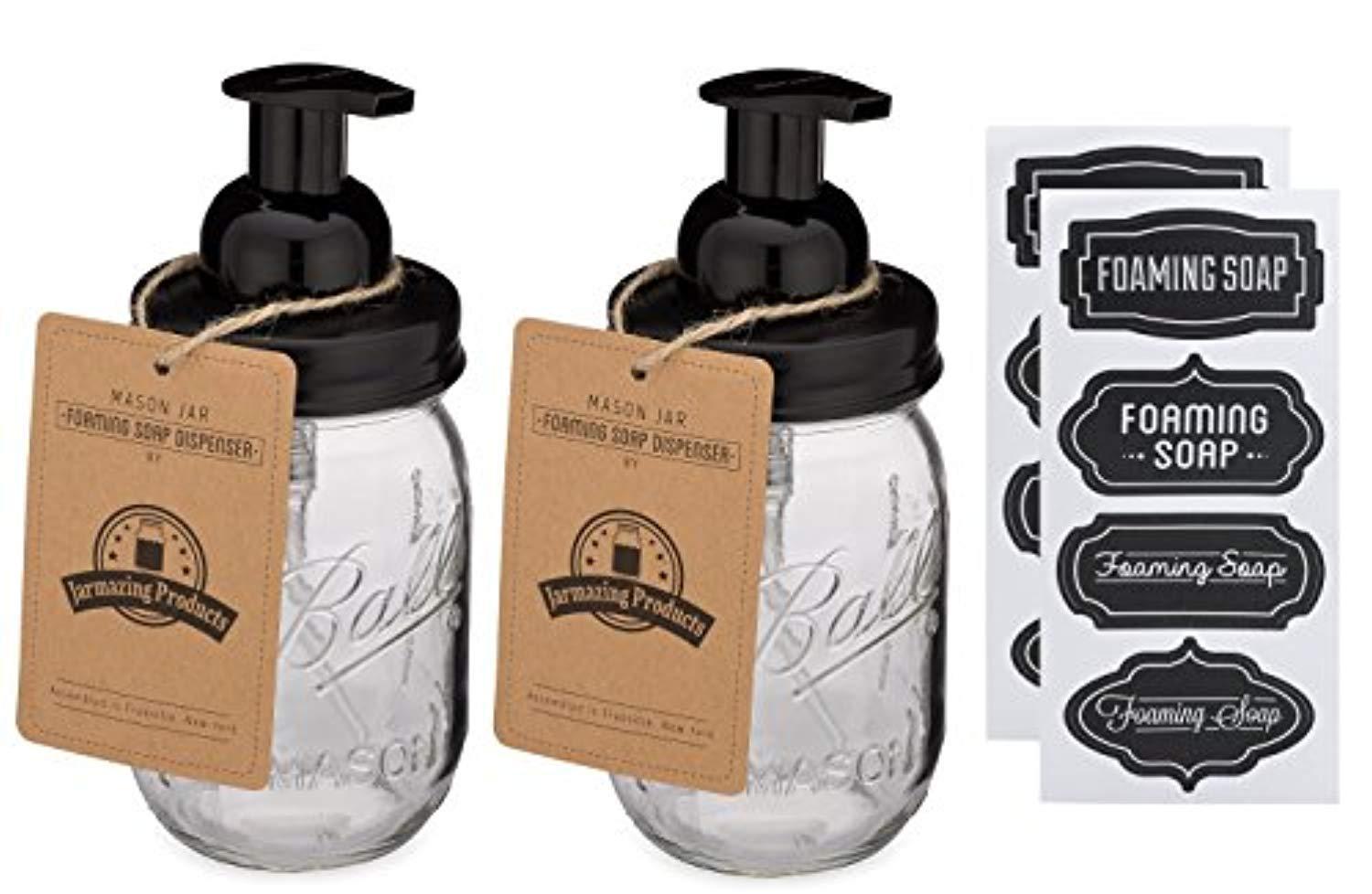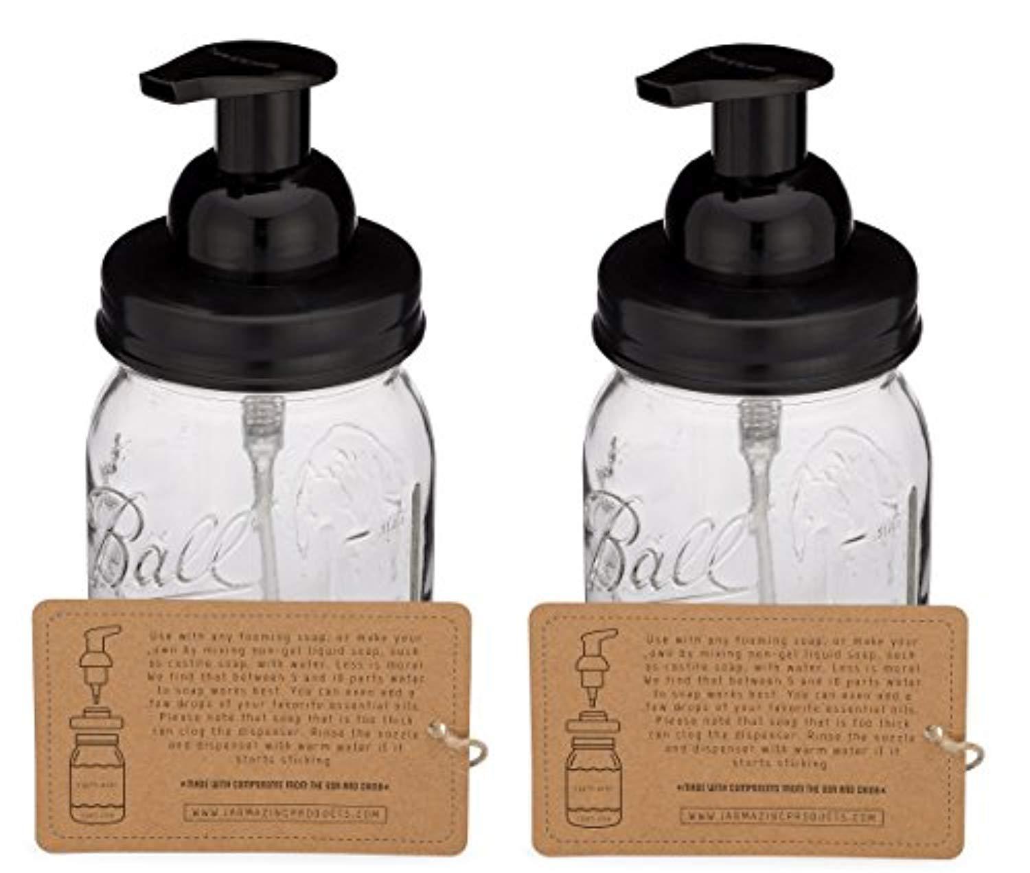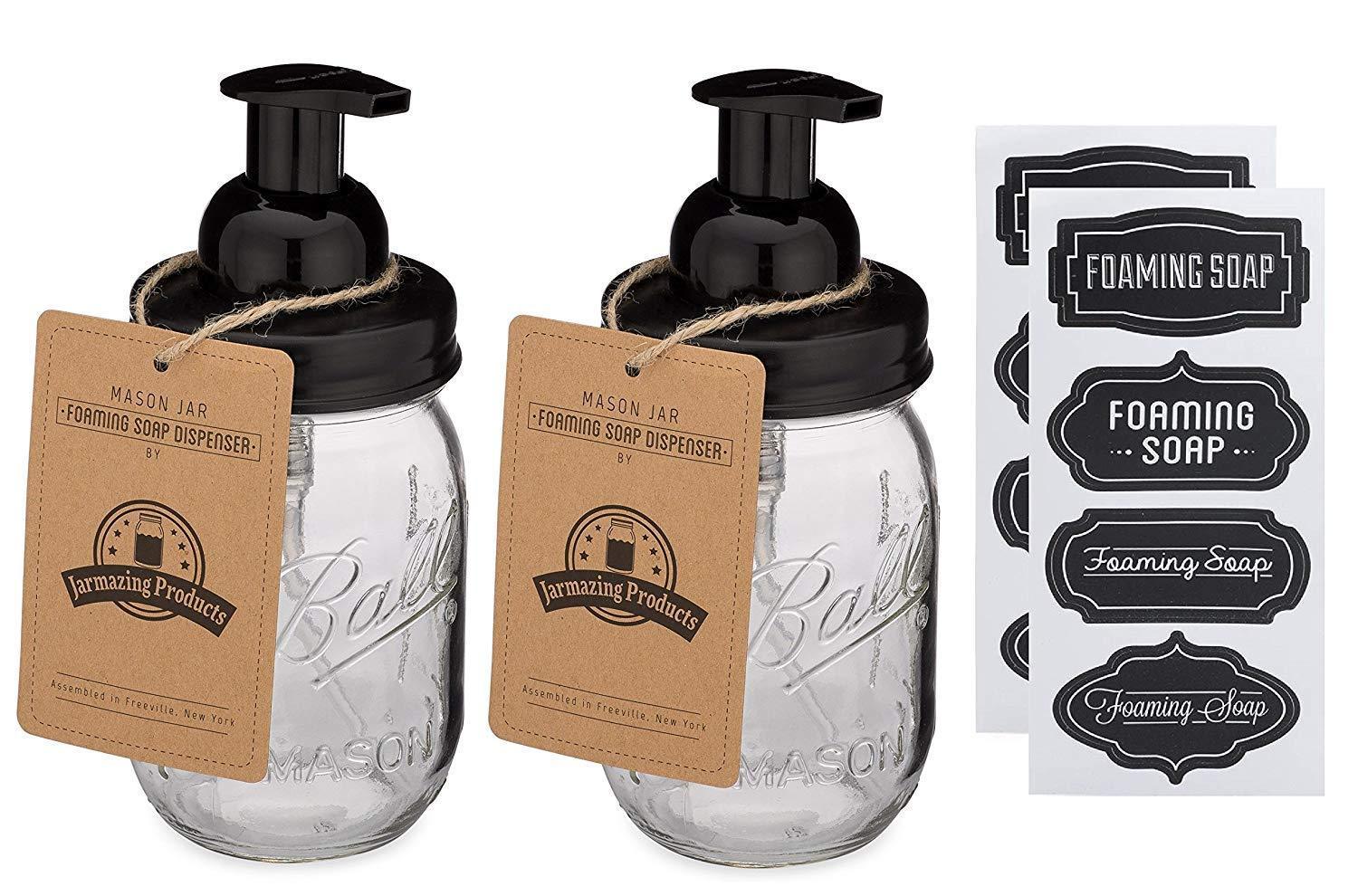 Jarmazing Products Mason Jar Foaming Soap Dispenser - Black - with 16 Ounce Ball Mason Jar - Two Pack!