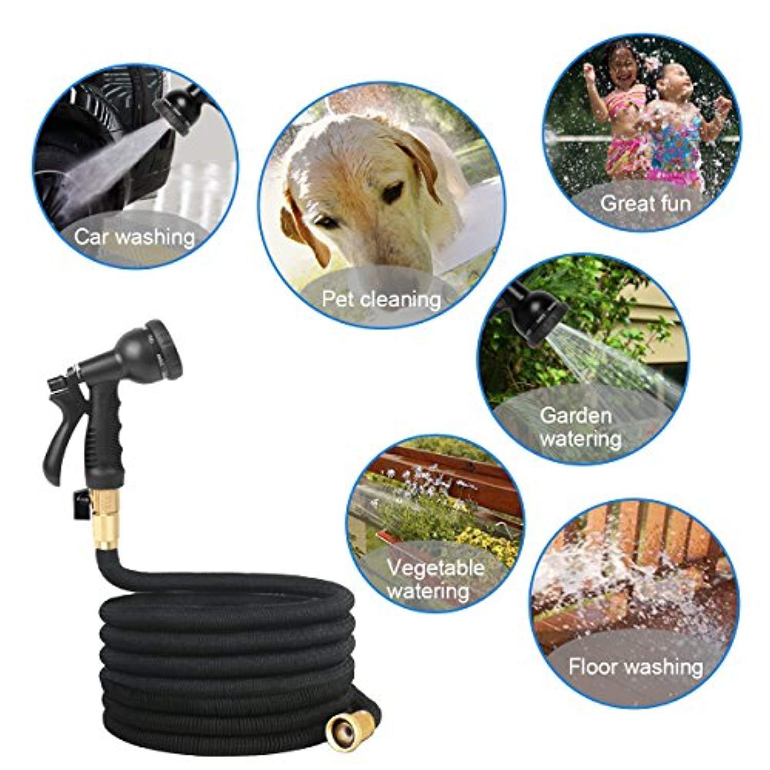 Jogboy Expandable Garden Hose, 50 ft Water Hose with Triple Layer Latex and Solid Brass Fittings, Flexible Expanding Hose for Yard, 8 Functions Spray Nozzle & Extra Strength Fabric
