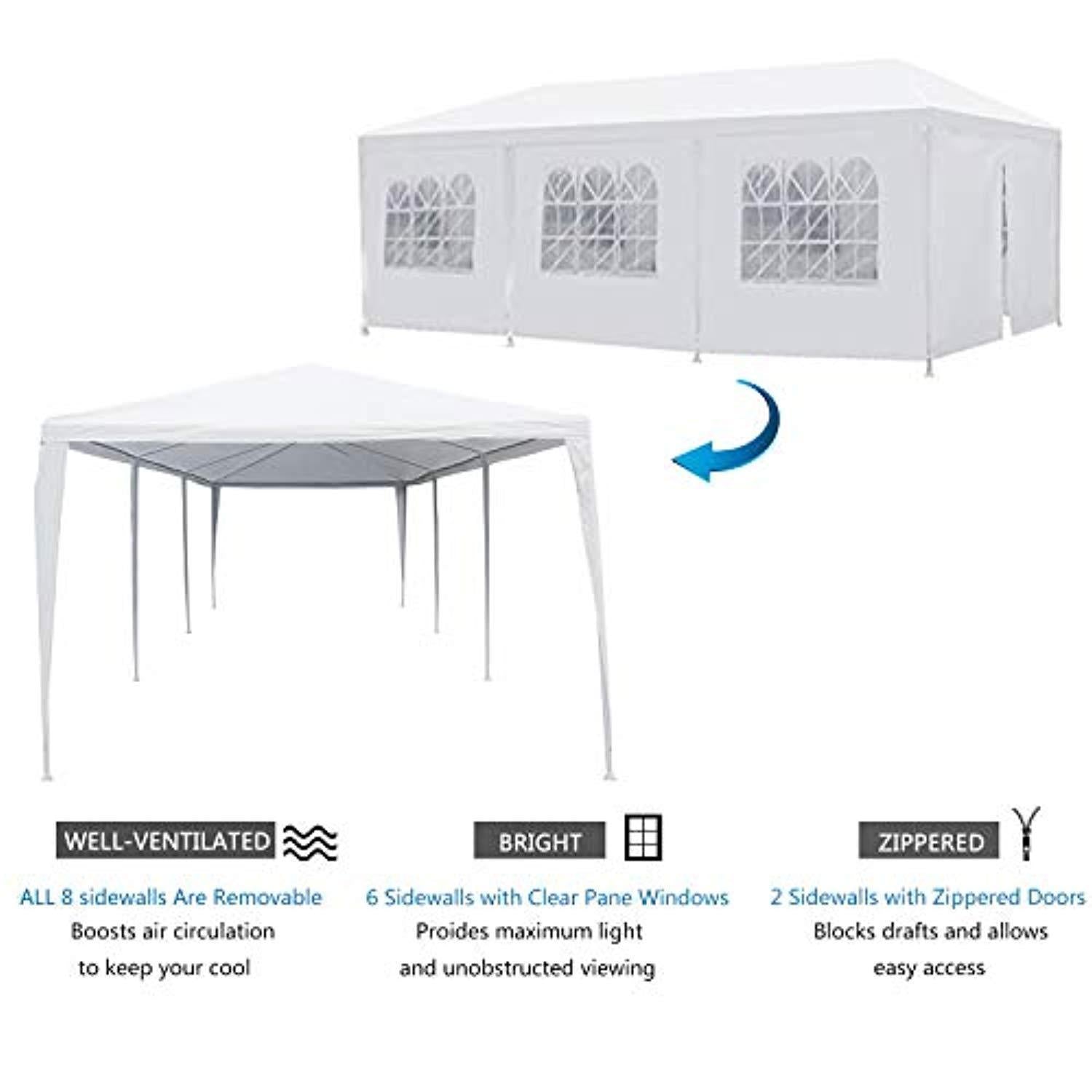 JOO LIFE 10' x 30' Canopy Outdoor Party Wedding Tent Heavy Duty Gazebo Pavilion 8 Removable sidewalls,White Canopy Tent BBQ Shelter