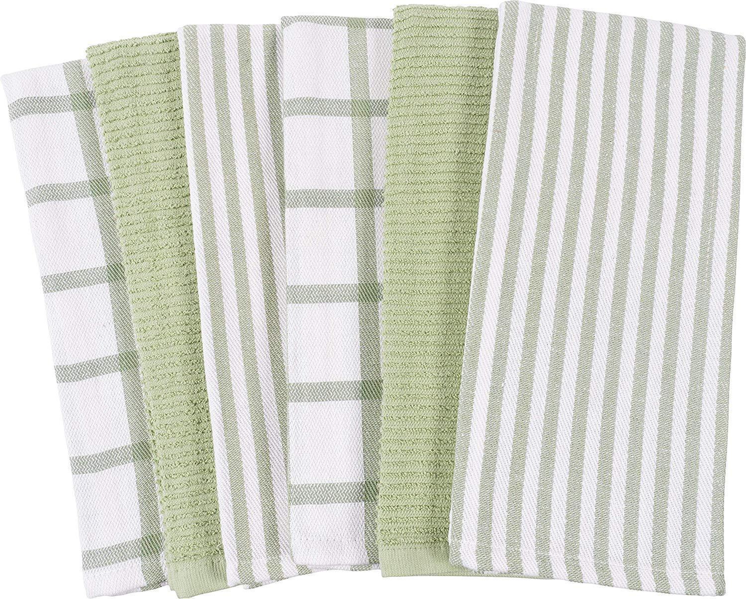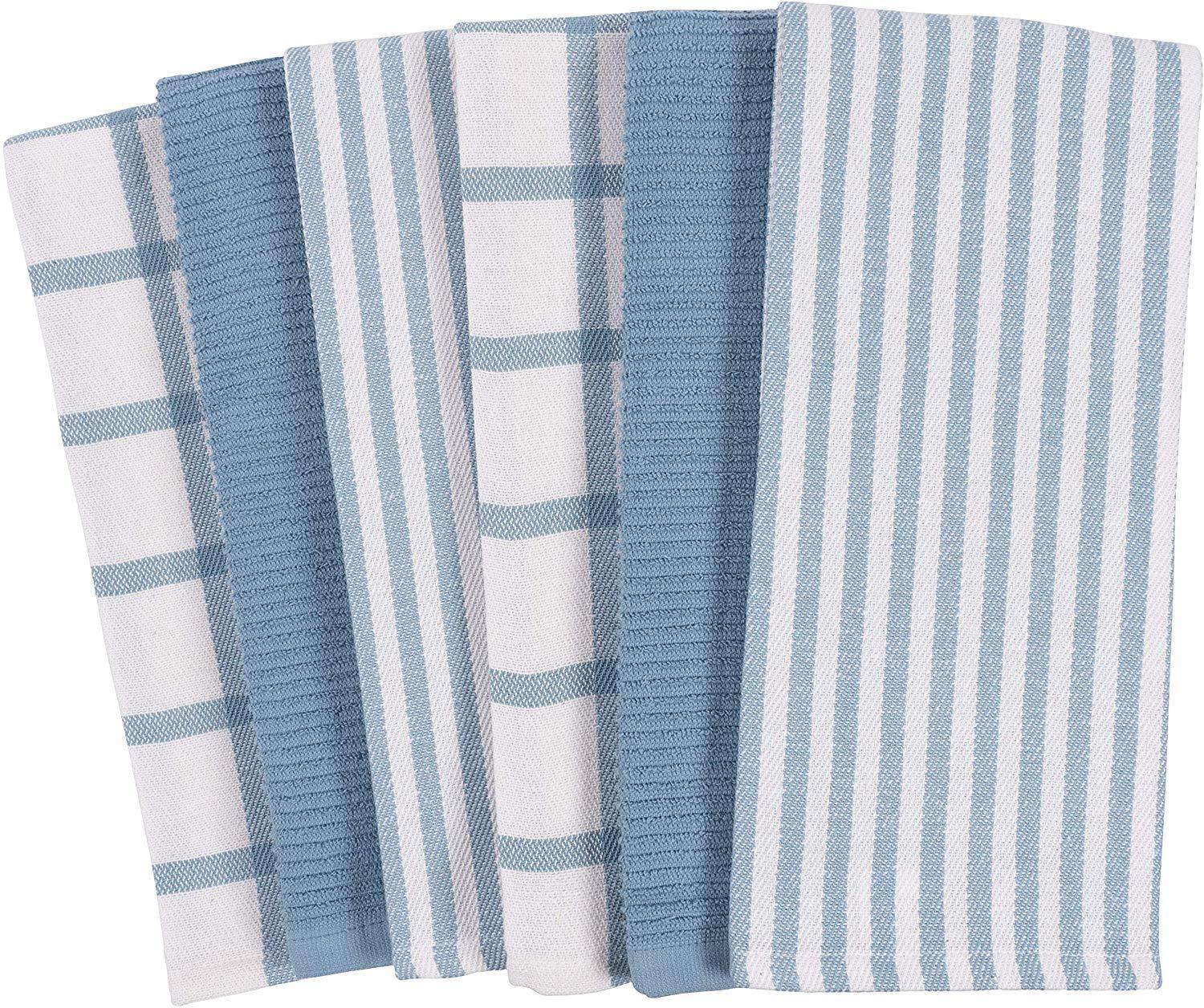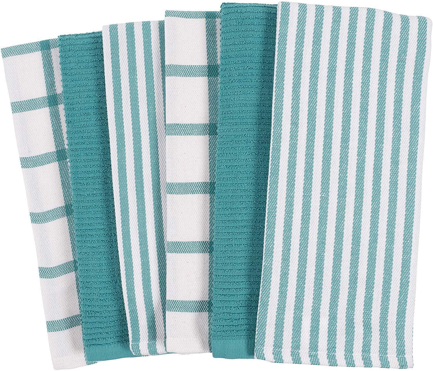 KAF Home Mixed Flat & Terry Kitchen Towels | Set of 6 18 x 28 Inches | 4 Flat Weave Towels for Cooking and Drying Dishes and 2 Terry Towels, for House Cleaning and Tackling Messes and Spills (Teal)