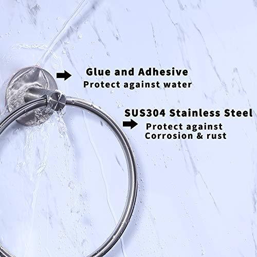 Kes Bath 3M Hand Towel Holder Ring Hanger Self-Adhesive + Nail Drill Free Glue Damage Free SUS304 Stainless Steel Brushed Finish, A2180DM-2