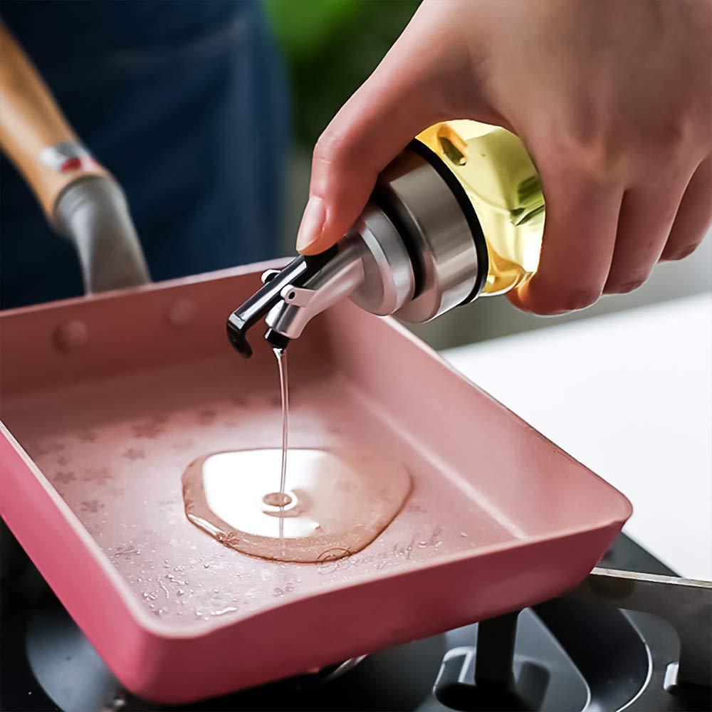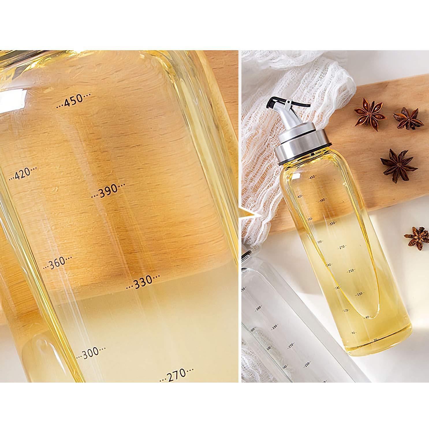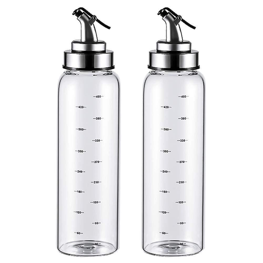 Kingrol 2 Pack Oil Cruet Glasses, 17 oz Olive Oil and Vinegar Dispenser with Degree Scale - No Drip Glass Bottles for Oil