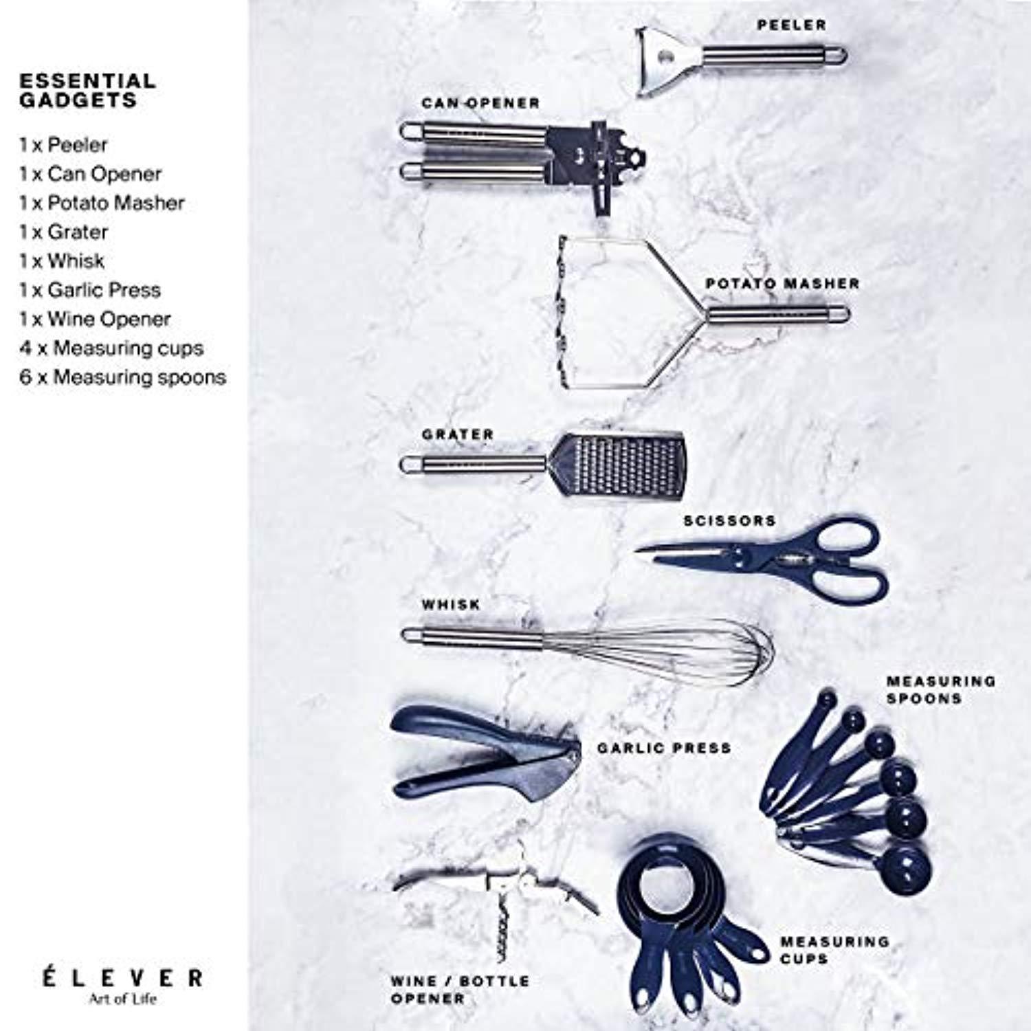 Kitchen Utensil Set - 26 Kitchen Gadgets & Cooking Utensils. Stainless Steel Kitchen Utensils for Nonstick Cookware Set. Spatula Set. Best Kitchen Tools Apartment Essentials Gifts for him - ÉLEVER