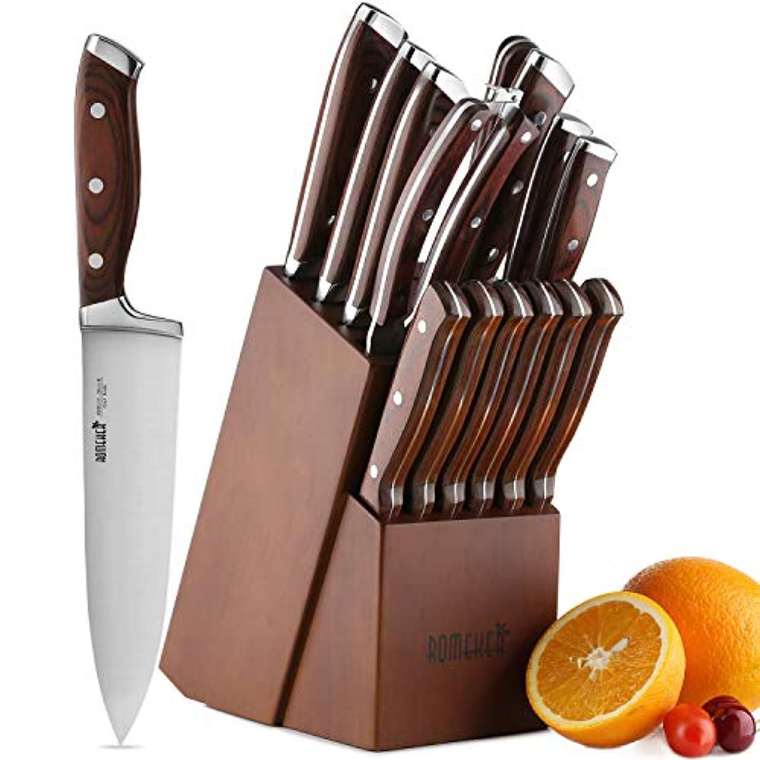 Knife Set,15-Piece Kitchen Knife Set with Block Wooden,Chef Knife Set with Sharpener,Germany High Carbon Stainless Steel Knife Block Set,Boxed Knife Sets,ROMEKER
