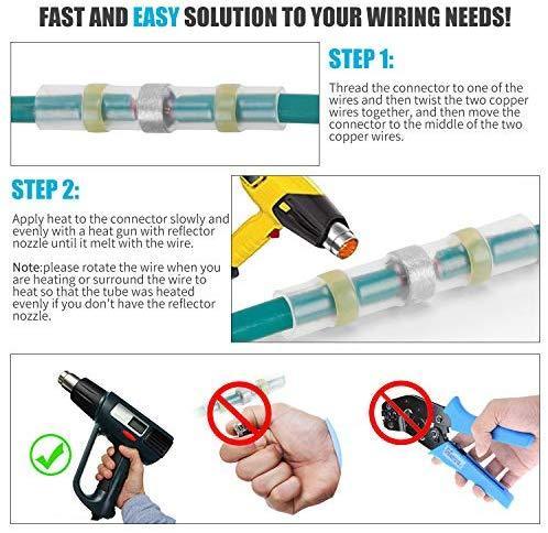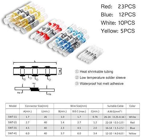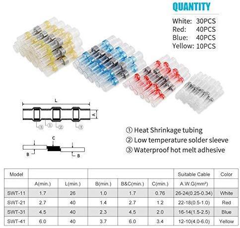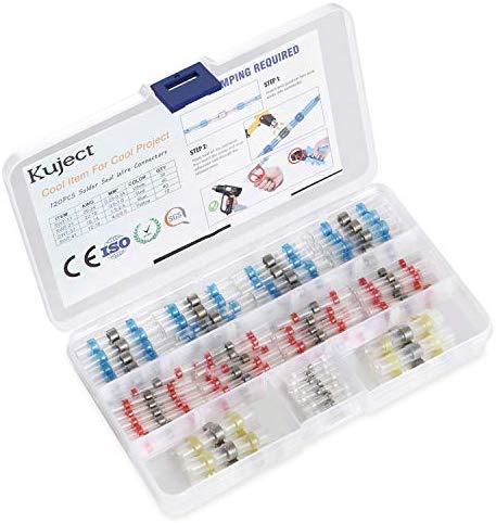 Kuject 120PCS Solder Seal Wire Connectors, Self-Solder Heat Shrink Butt Connector Waterproof Insulated Electrical Butt Splice Wire Terminals for Marine Automotive Aircraft Boat Truck Stereo Wire Joint