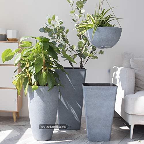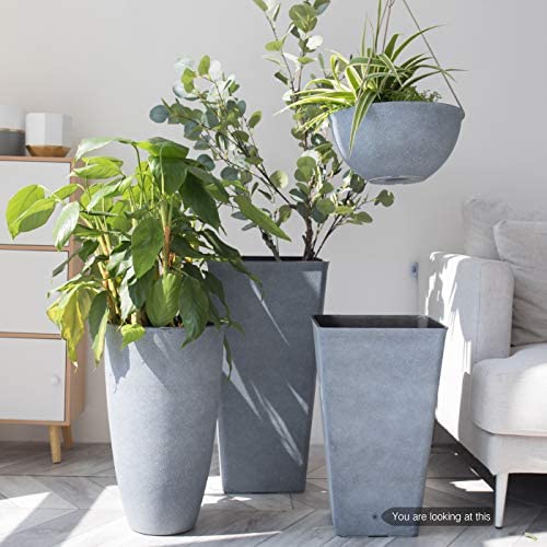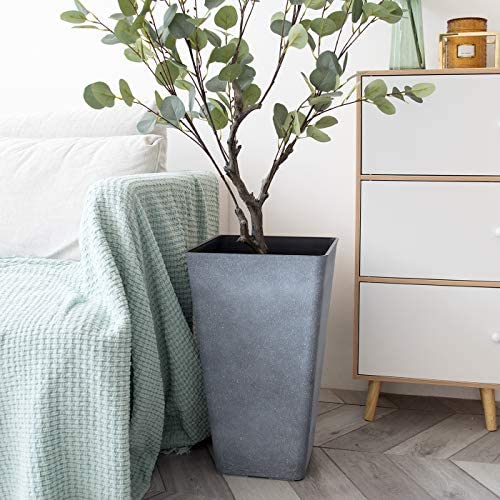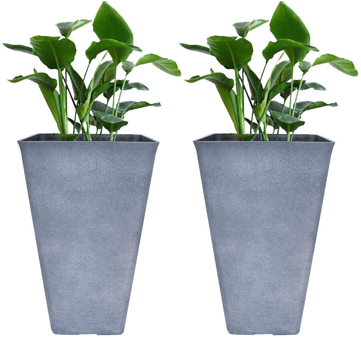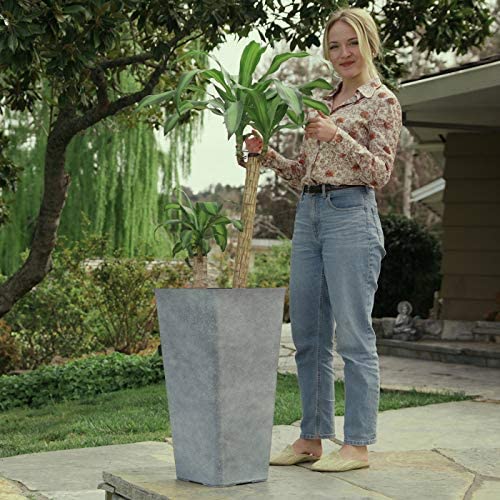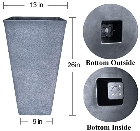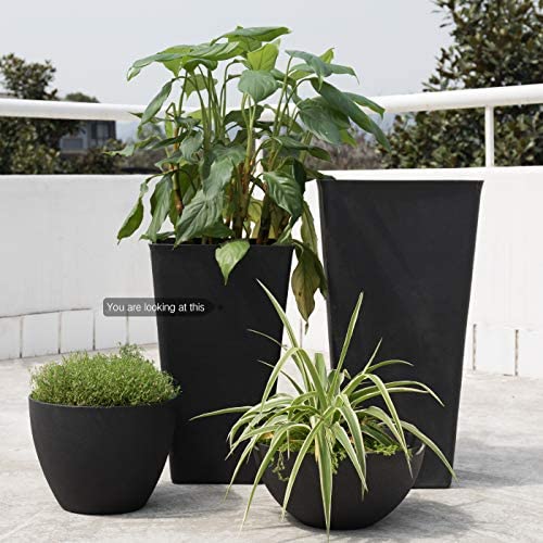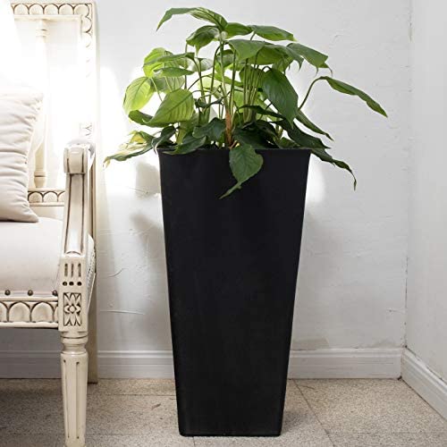 La Jolíe Muse Tall Planters 26 Inch, Flower Pot Pack 2, Patio Deck Indoor Outdoor Garden Tree Planters, Black