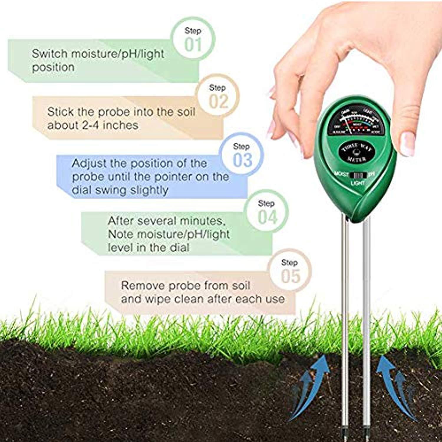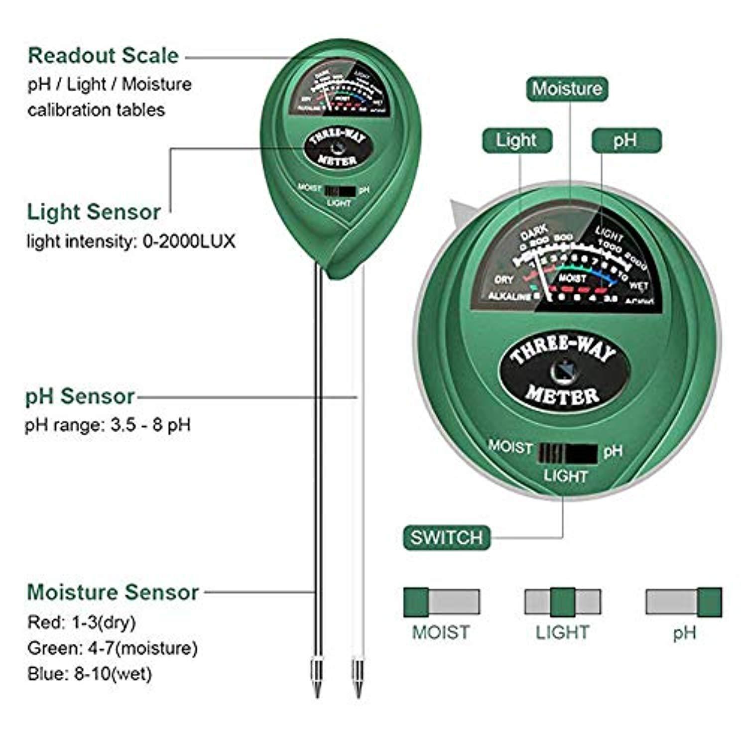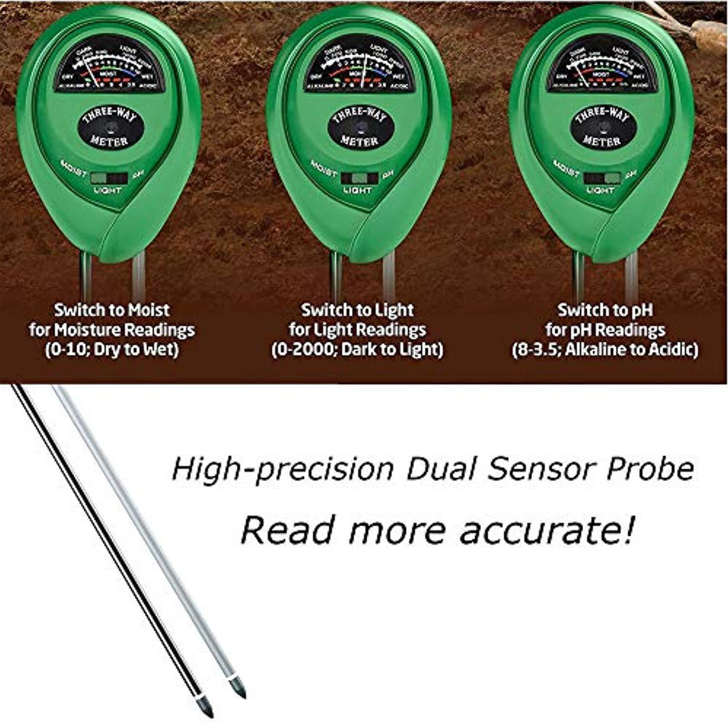 Lailieu Soil Test Kit 3-in-1 Soil Tester with Moisture,Light and PH Meter, Indoor/Outdoor Plants Care Soil Sensor for Home and Garden, Farm, Herbs & Gardening Tools(No Battery Needed)