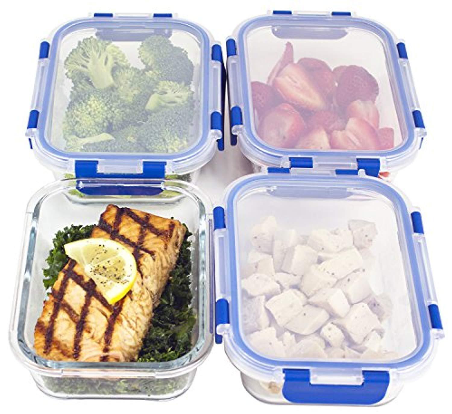 [LARGER PREMIUM 4 SET] 950 ML Glass Meal Prep Containers with Lifetime Lasting Snap Locking Lids Glass Food Containers BPA-Free, Microwave, Oven, Freezer and Dishwasher Safe (32 Oz.)