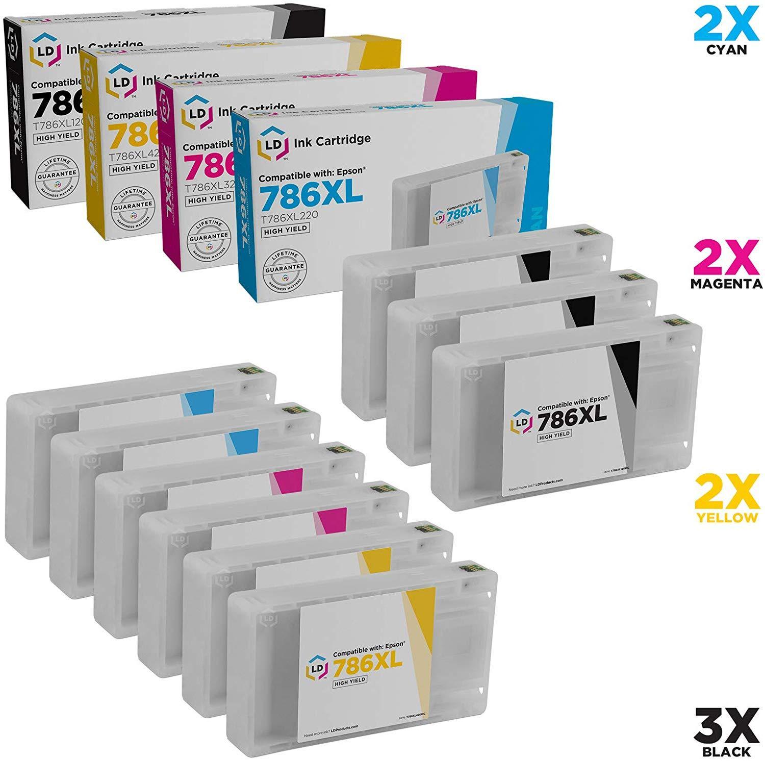 These are the Higher Yield Version of: Epson 786 | T786120 Black | T786220 Cyan | T786320 Magenta | T786420 Yellow All LD compatible and remanufactured cartridges are quality tested to ensure long-lasting use and bold, vivid print on every page