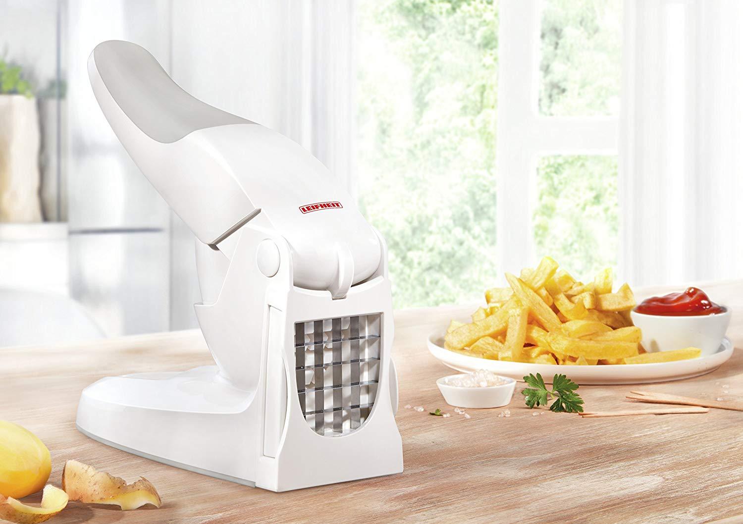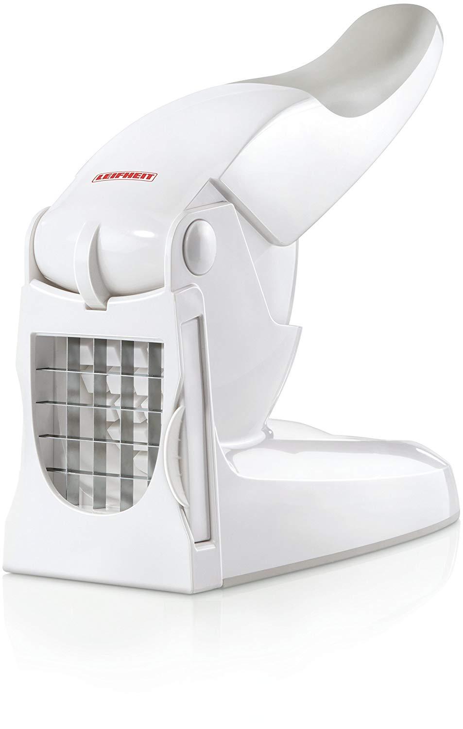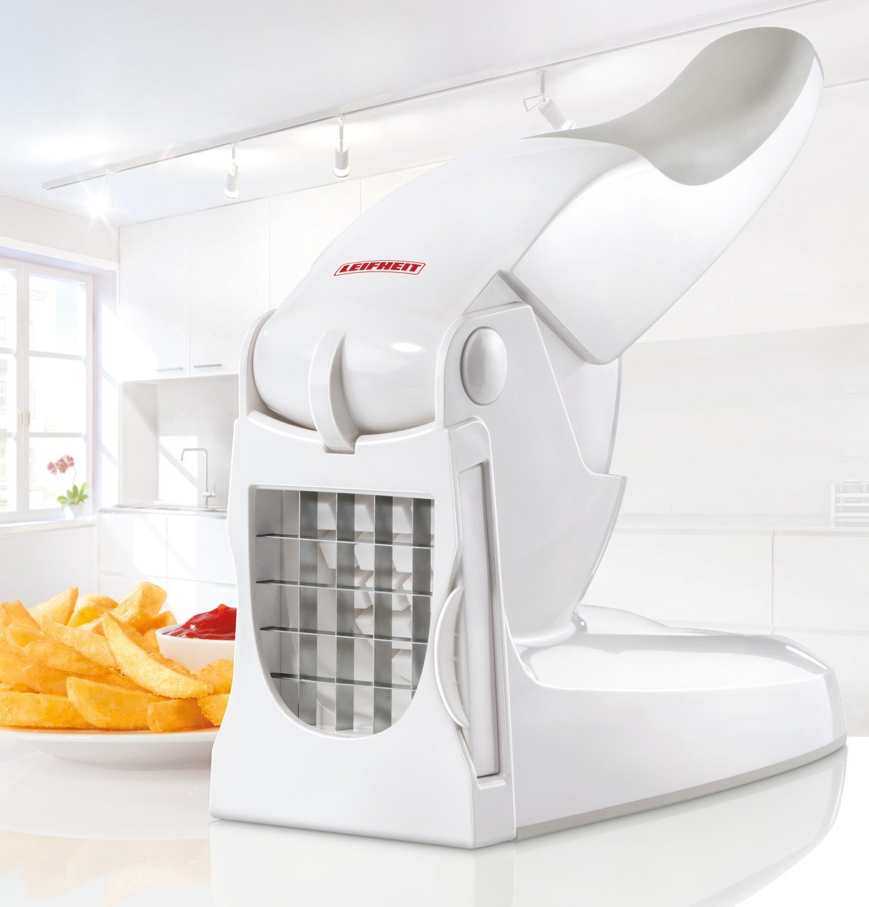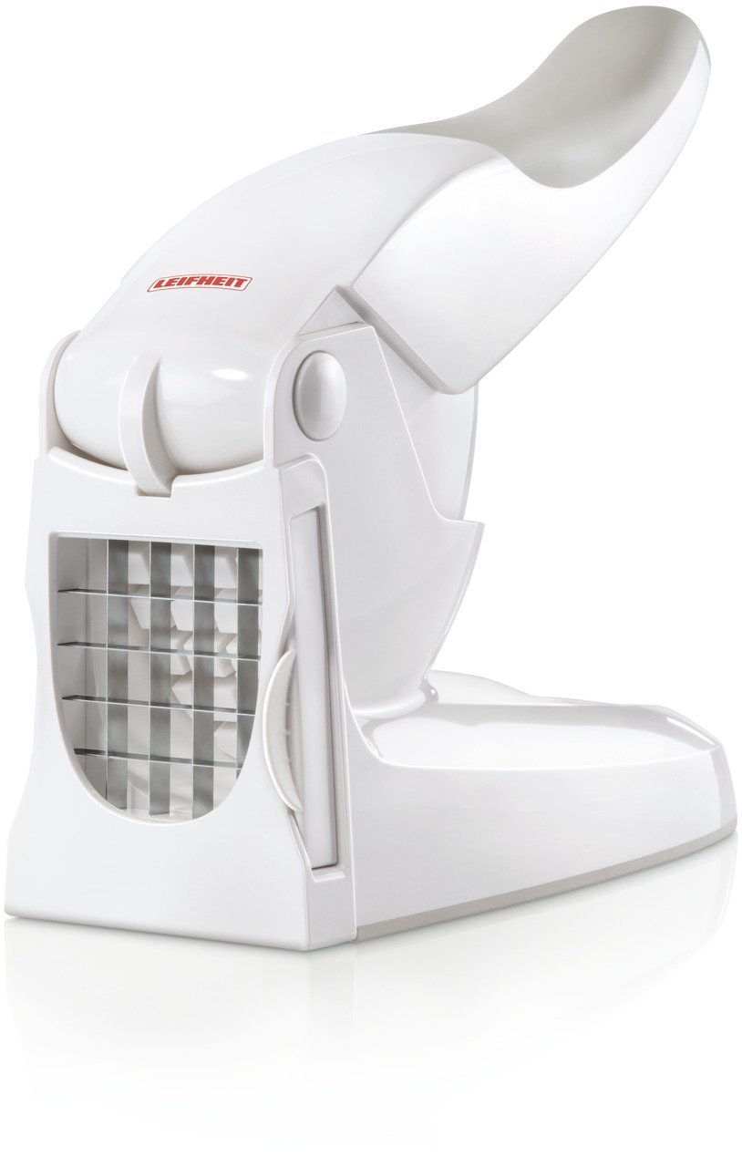 Easily cut potato and vegetable sticks with two blade inserts One press of the handle produces many sticks in 10-mm and 12-mm size For easy preparation of chips and healthy vegetable sticks The non-slip soft-touch zone on the handle makes cutting easier The base's anti-slip coating prevents slipping while cutting. 3-year guarantee