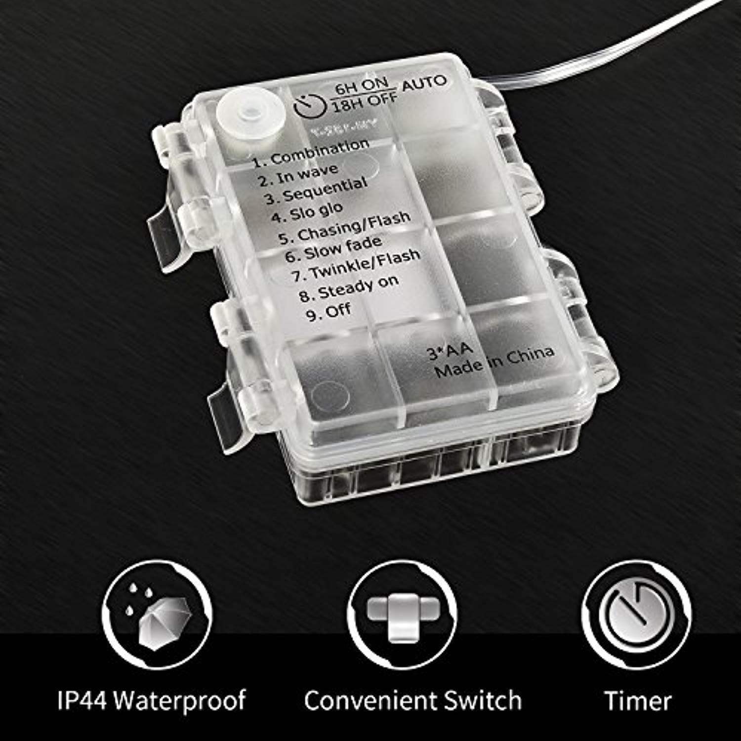 ENERGY SAVING AND EFFICIENT: Coming with waterproof battery case and Powered by 3 x AA batteries (Replaceable but Not included), these battery powered string lights can work continuously for 60 hours.