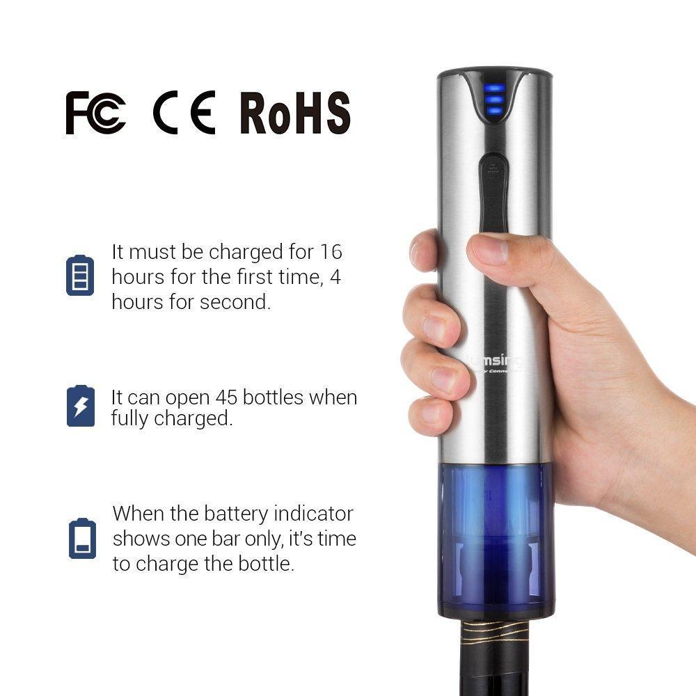Electric Corkscrew Wine Opener: Built-in rechargeable battery, Opens up to 45 bottles on a single charge. Rated Voltage (3.6V / Inside 3 x AA 600mAH Ni-MH)