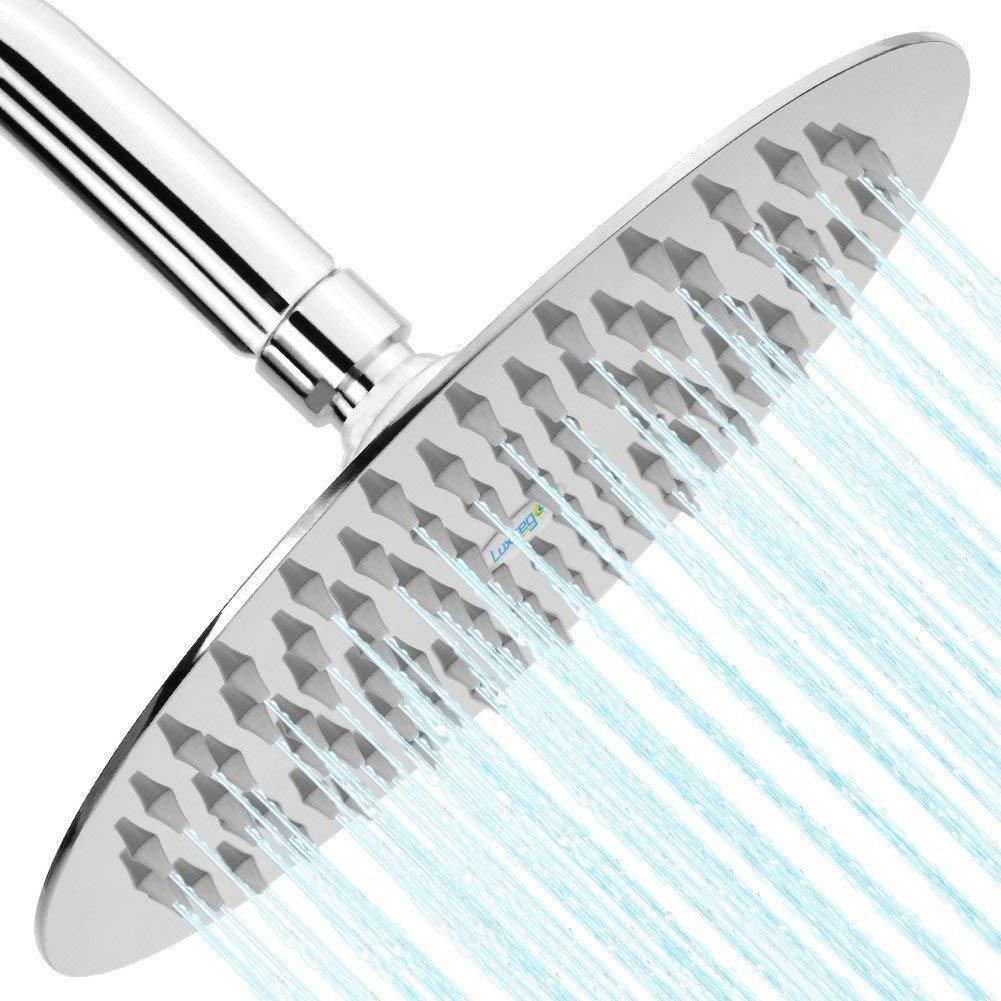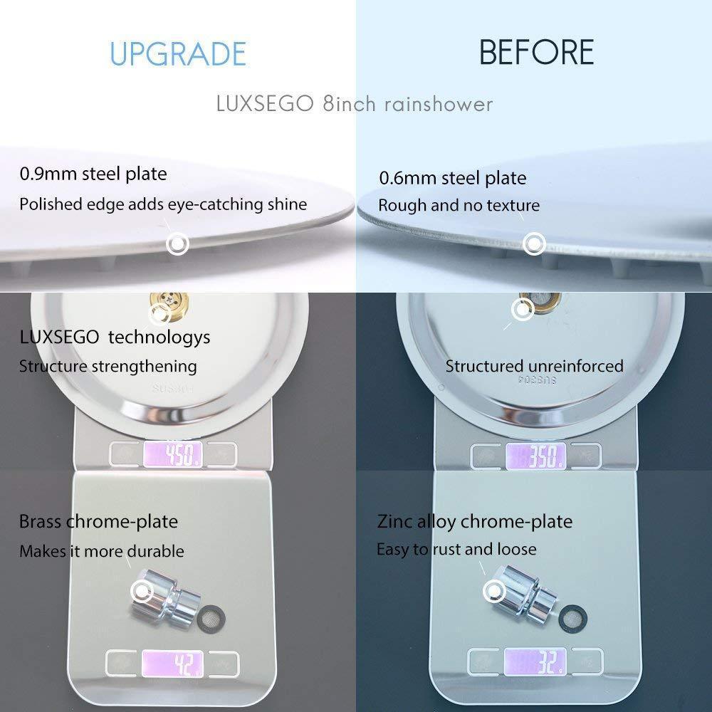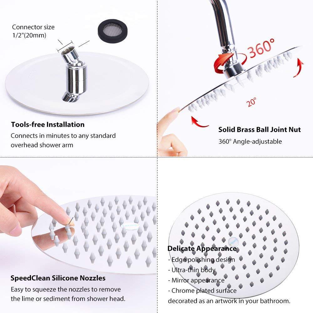 Luxsego Shower Head Top Spray, 360 Degree Adjustable Rainfall Shower Head, Fixed High PressureShower Head, Easy to Clean and Install - 100% Stainless Steel Chrome Finish