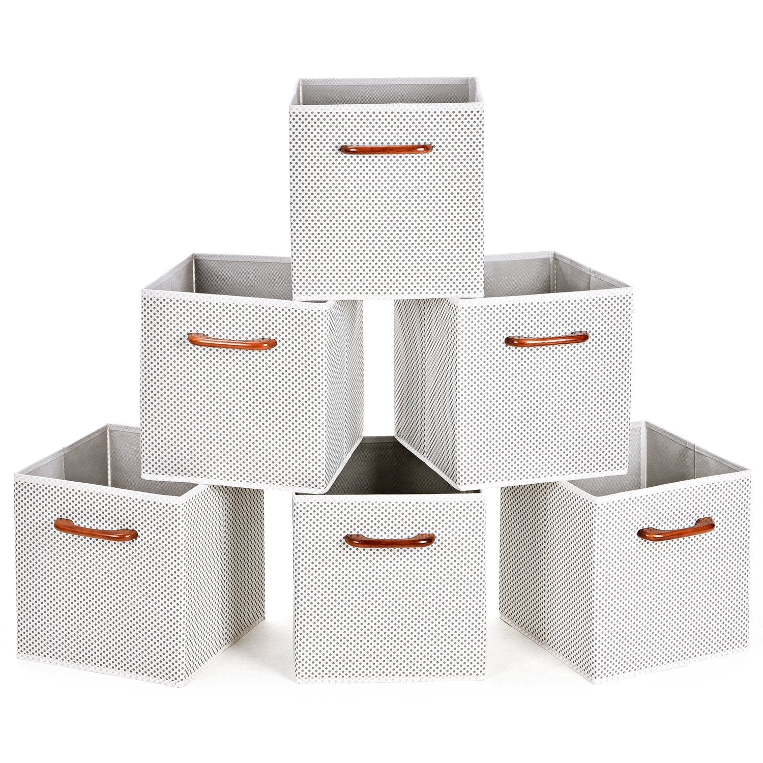 MaidMAX Cloth Storage Bins Cubes Baskets Containers with Wooden Handle for Home Closet Bedroom Drawers Organizers, Foldable, Gray Chevron, Set of 6
