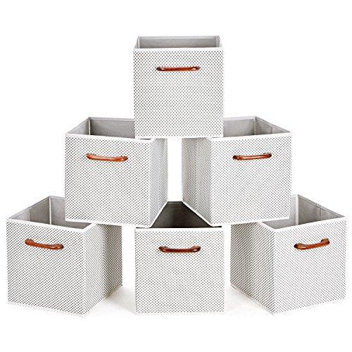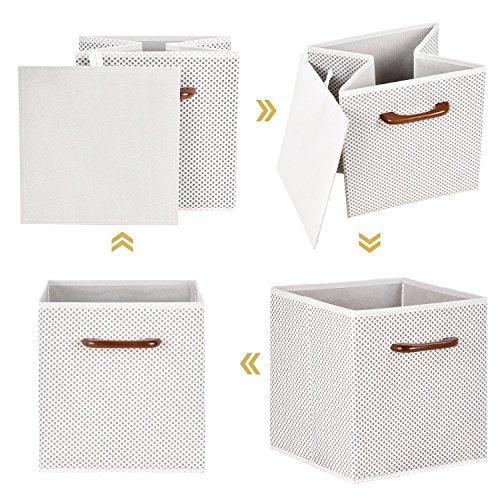 PERFECT SIZE FOR MOST SHELVES: Measuring 10.5 x 10.5 x 11" each, these Fabric Storage Containers offer ample space for organizing stuff like socks, underwear, nursery bedding, diapers, hobby, craft or office supplies and keeping your clutter out of sight. No more seeing all the mess through plastic bins! And the decent size makes them perfect for most cube organizers/ shelves.