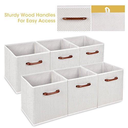 STURDY HANDLES FOR EASY ACCESS: Each of these Foldable Storage Cubes features a sturdy wooden handle, making it convenient to retrieve the items from the shelves. (Please note that the handle is arrived uninstalled. Tools for assembly are included in the package.)