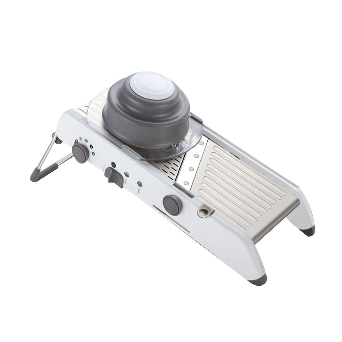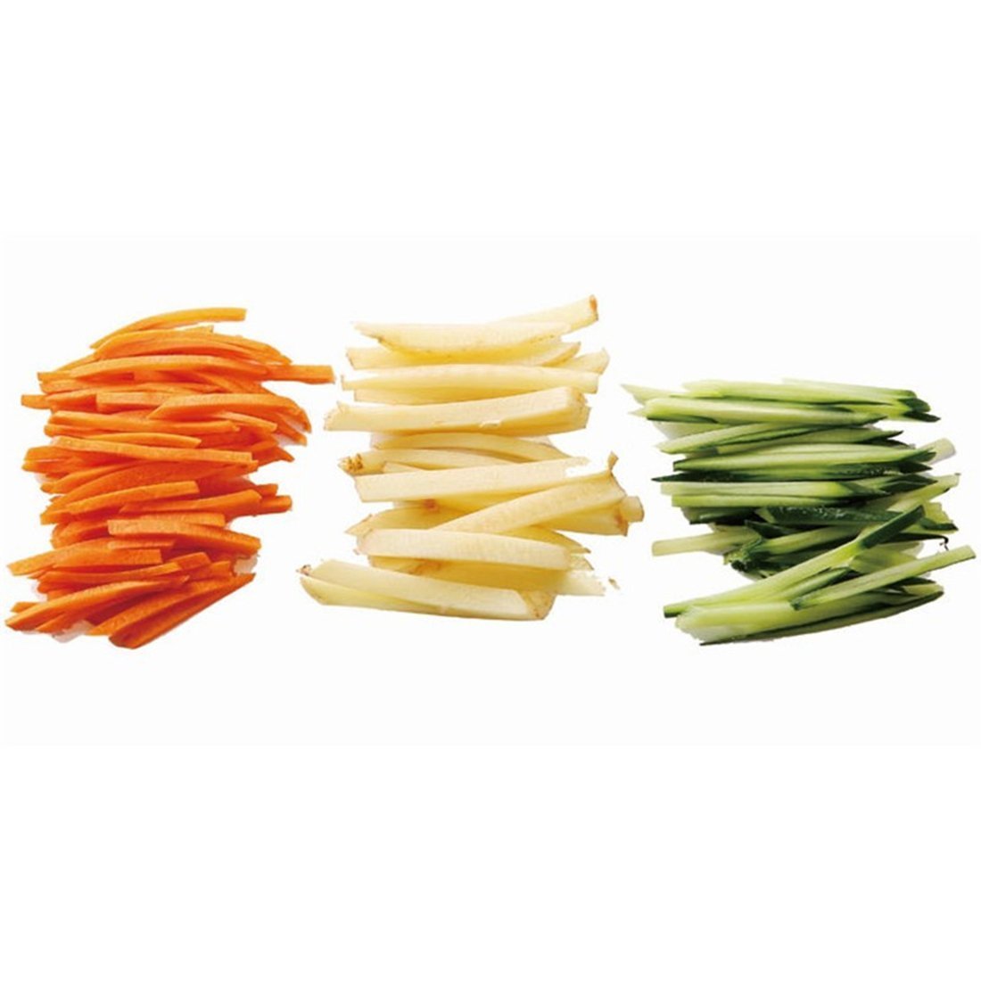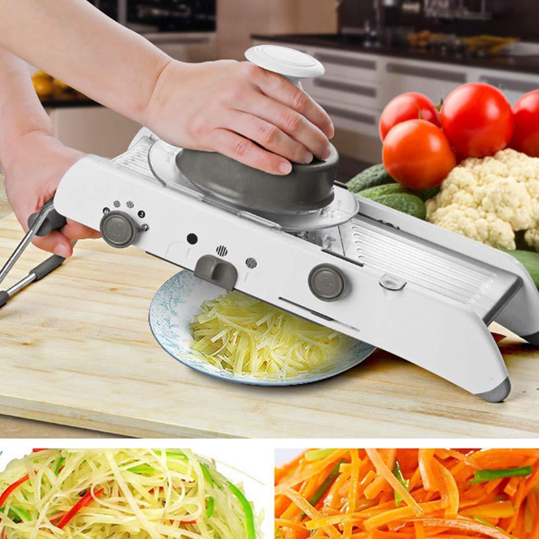 Easy to Clean - The mandoline vegetable slicer is easy to clean under running tap or dishwasher; No need to touch or change blades and risk cutting yourself; The blade can be locked flat for storage to avoid accidental cuts when handling the unit or putting it away in the cupboard. Save time - The mandoline vegetable slicer is very quick to allow all changes to size and shape of cuts to be made through turning one of the three knobs on the side of the mandolin. This gives home cook many options for chips, sliced fruit and vegetable, waffle cut chips or varying thickness of French fries. Durable - Heavy duty stainless steel mandoline vegetable slicer base is strong and durable. Safey - Non slip rubber feet and slicing guard makes this mandoline vegetable slicer safe to use.