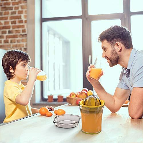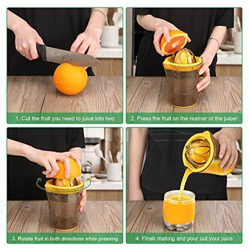 Manual Citrus Orange Squeezer, Lemon Orange Juicer Manual Hand Squeezer with 2 Lid Rotation Press Reamers, 20 oz, Transparent Brown, 1 Cleaning Brush by Sarissa
