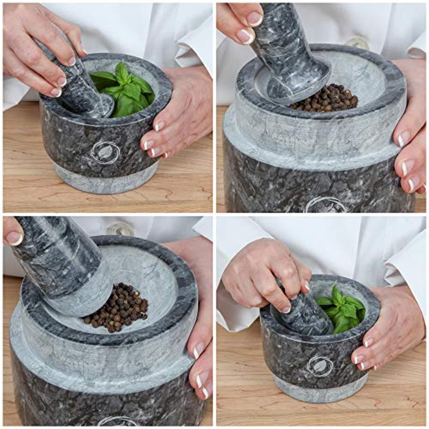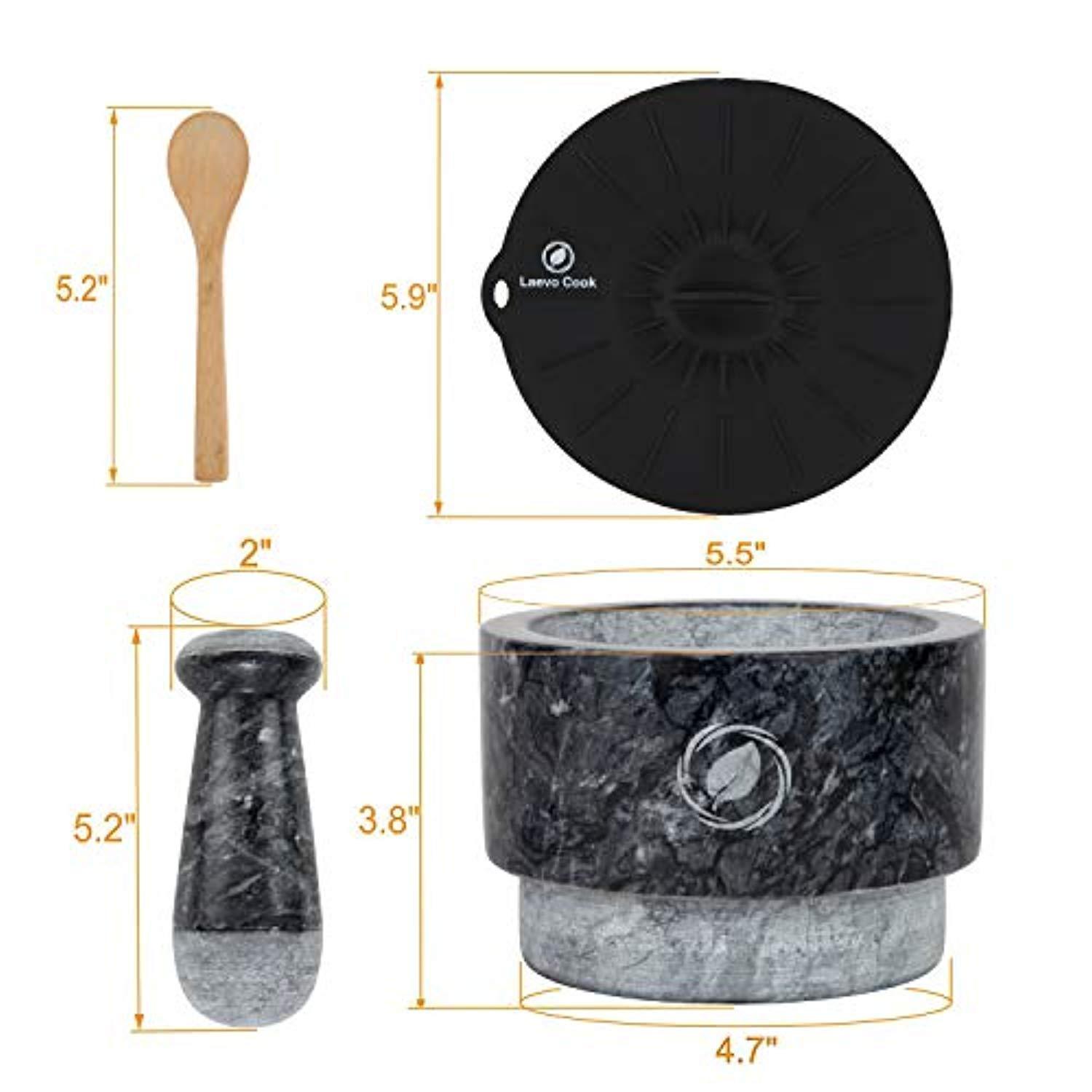 š REVERSIBLE Laevo Cook mortar and pestle - THE ONLY ON A MARKET. It allows to use both sides to separate the flavors and smells. You will love it for the unique design, convenience and durability! š EASY TO USE kitchen tool that grinds and crushes spices, herbs, salt, coffee beans and even pills and creates dishes like guacamole, curry, pastes, dips, dressings, seasonings and more. š GET BONUS ITEMS TODAY - Buy now and get your wooden spoon and silicone lid / placemat FREE. Protect your countertop and keep the dish fresh longer. š VALUE SET THAT WILL LAST all natural and eco - friendly set. 100% solid stone is heavyweight, stable and durable - it will last a lifetime! š RISK-FREE WARRANTY - ensures your satisfaction. In case of any issues you are guaranteed to get your money back.