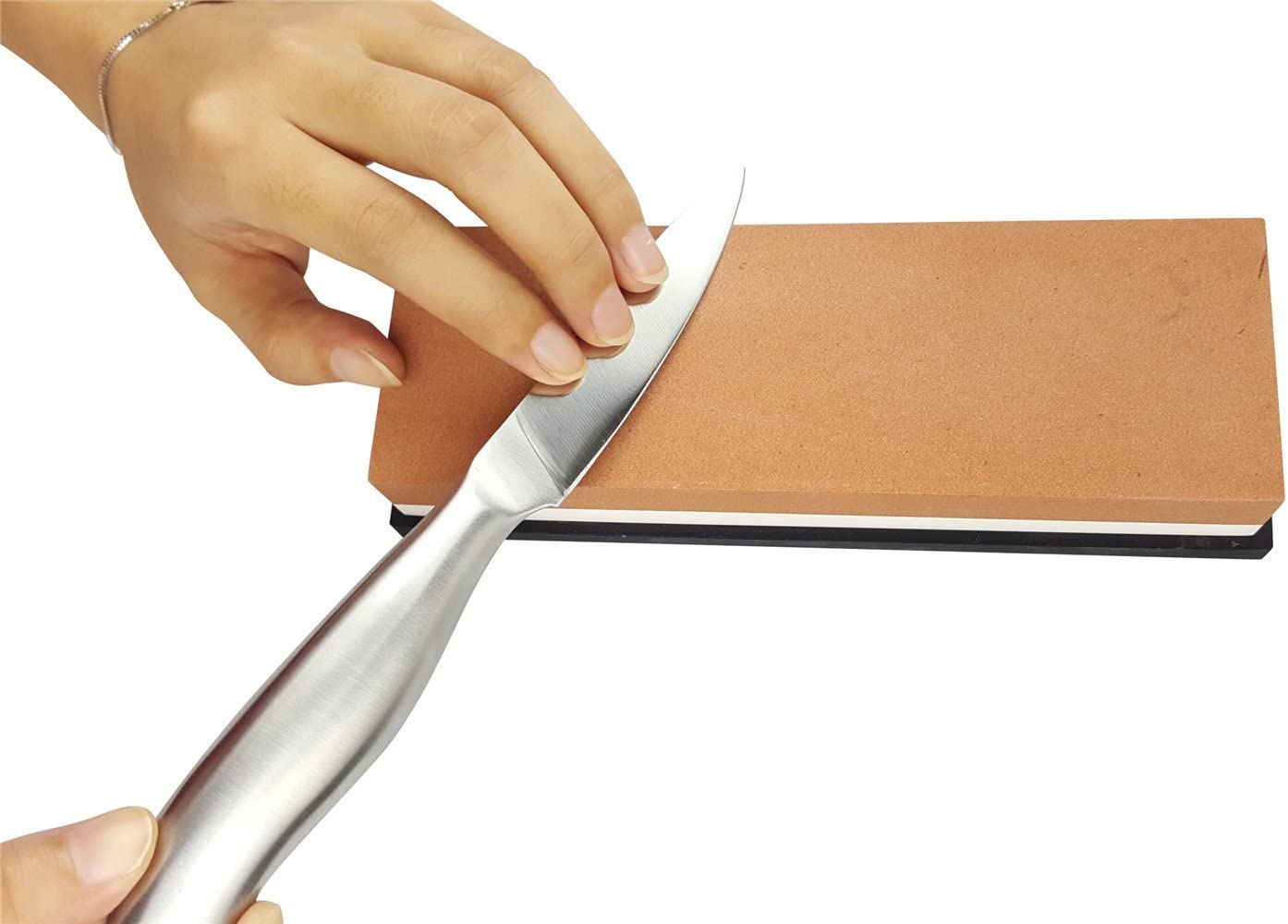 Tips: Soak stone for 5-10 minutes before use, and lubricate with additional water as needed when sharpening. No need for expensive sharpening/honing oils. Easily clean up with water.