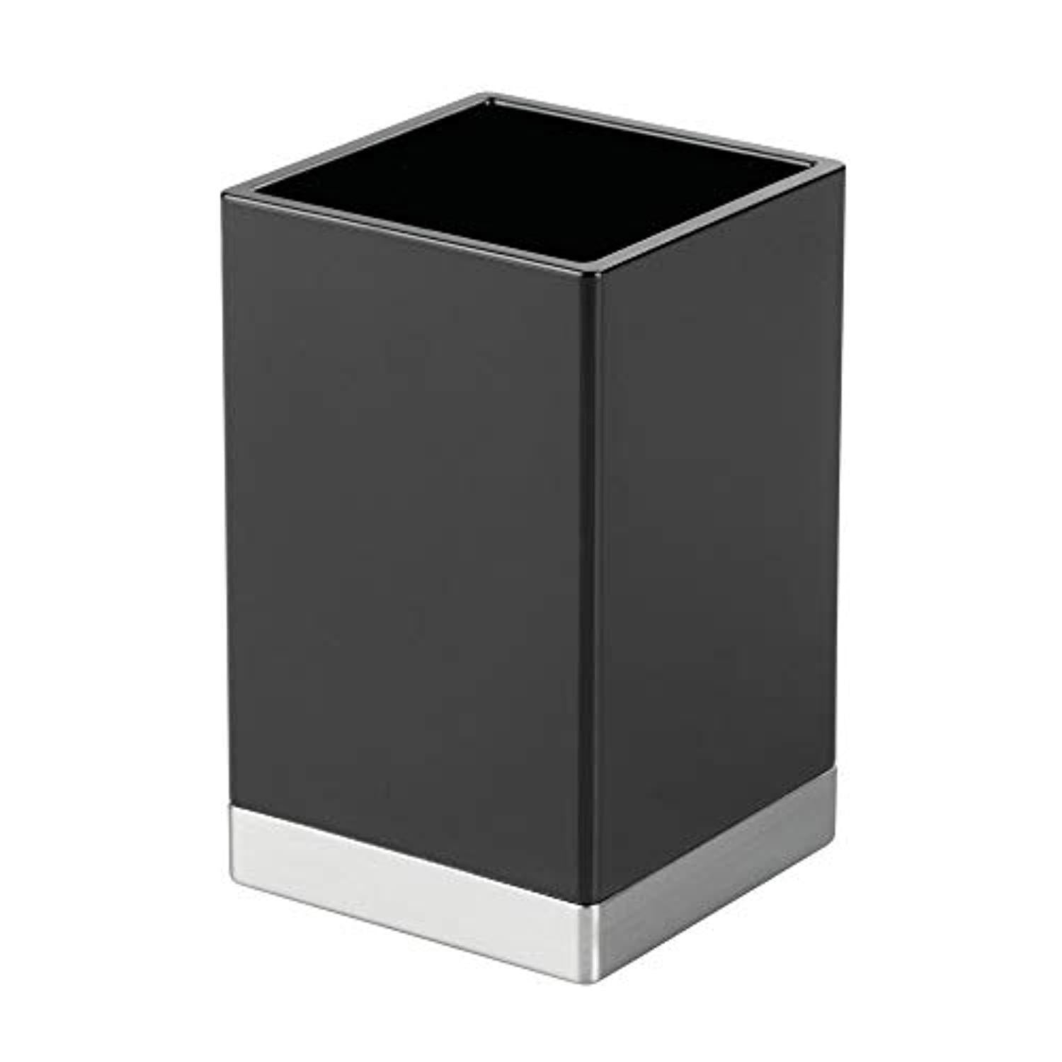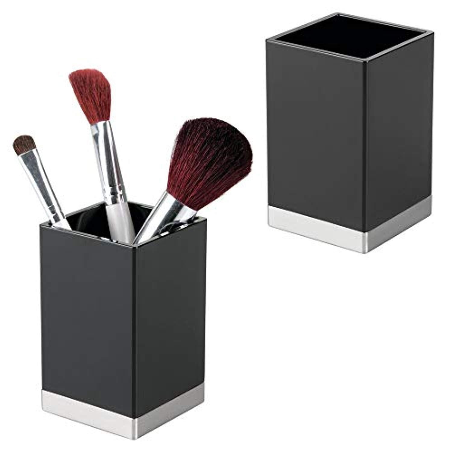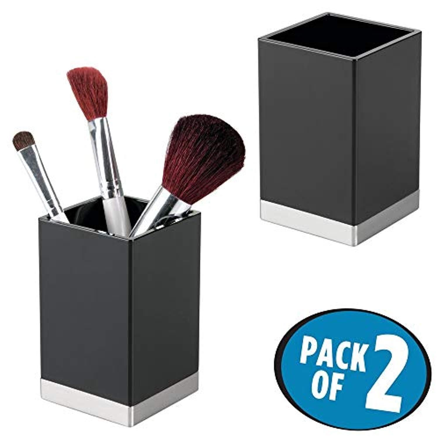 mDesign Modern Square Tumbler Cup for Bathroom Vanity Countertops - for Mouthwash/Mouth Rinse, Storing and Organizing Makeup Brushes, Eye Liners, Accessories - Slim Design, 2 Pack - Black/Brushed