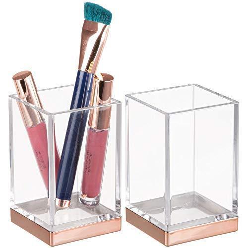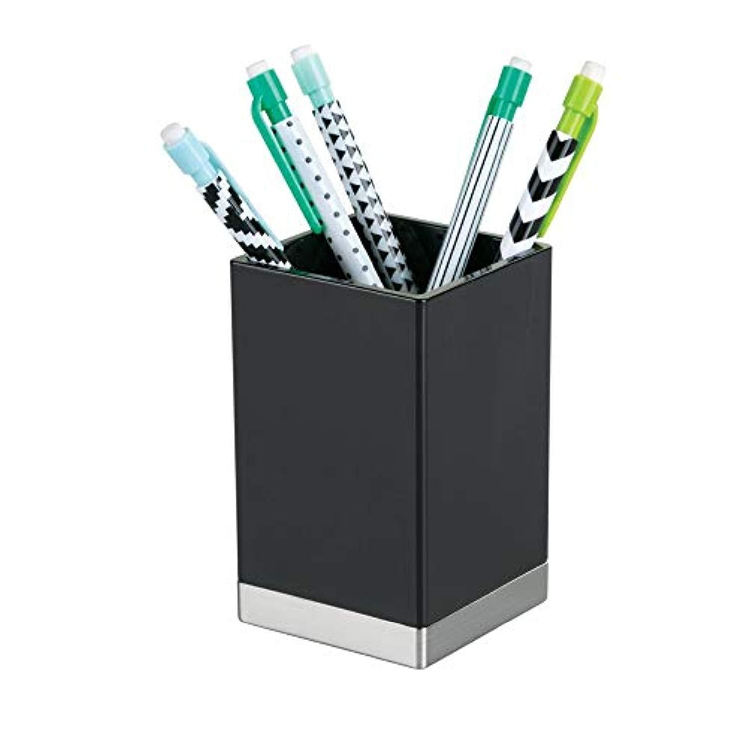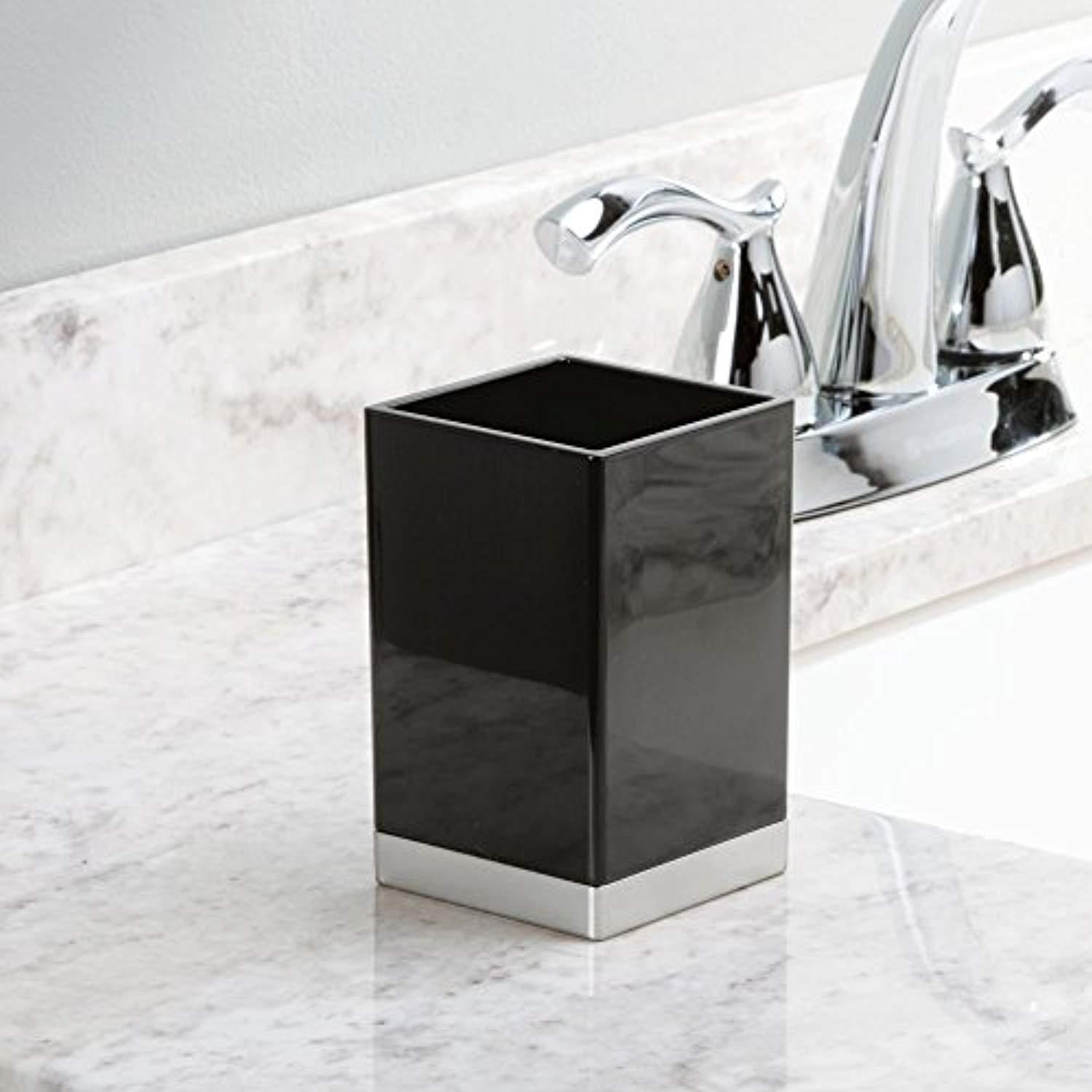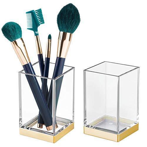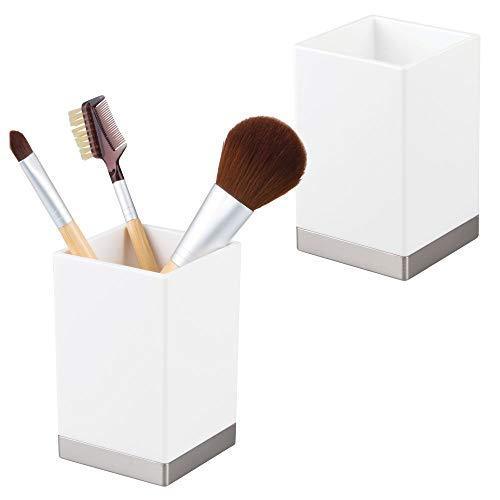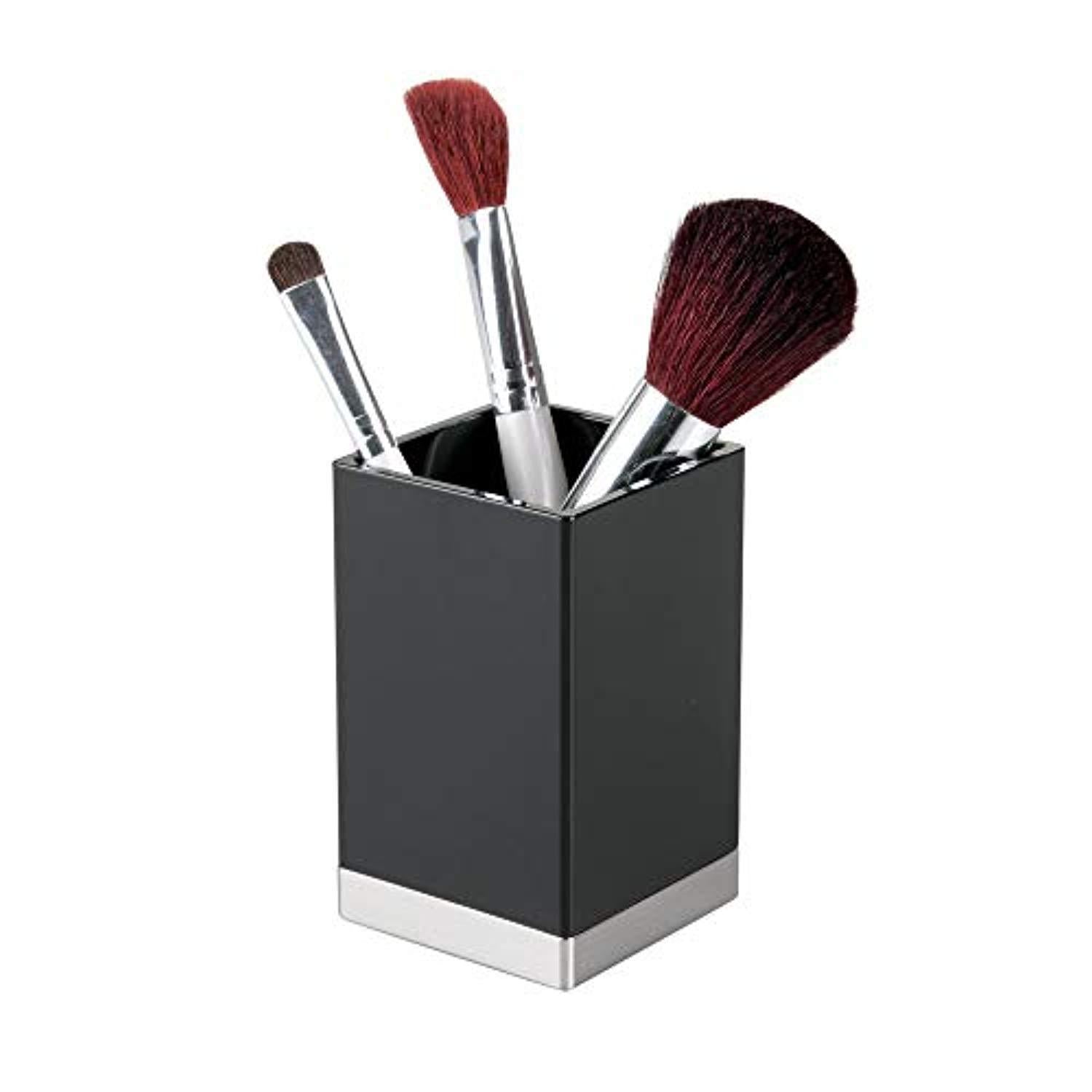 mDesign Modern Square Tumbler Cup for Bathroom Vanity Countertops - for Mouthwash/Mouth Rinse, Storing and Organizing Makeup Brushes, Eye Liners, Accessories - Slim Design, 2 Pack - Black/Brushed