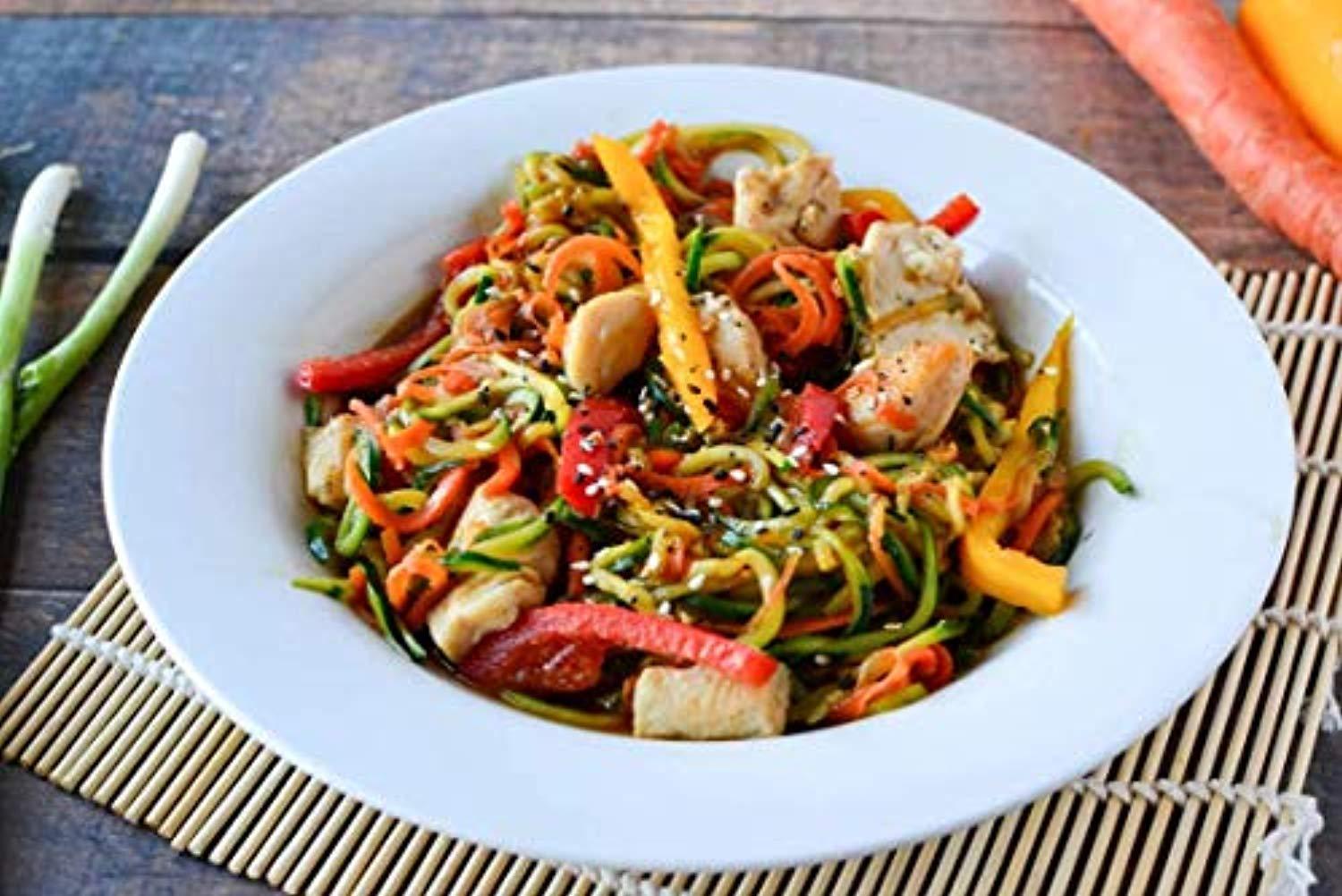 Mealthy 5-Blade Spiralizer | Vegetable Slicer with Durable Stainless Steel Blades | Kitchen Cooking Tool | Spiral Zoodle Maker with Catch & Store Container | Includes iOS & Android Recipe & Video App