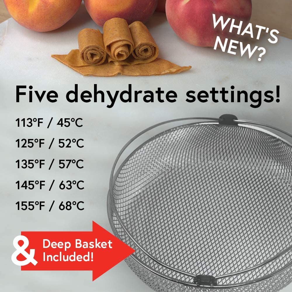 NEW FEATURES: Deep basket included for larger capacity cooking; 5 dehydrate settings for drying food in the pot of your electric pressure cooker!