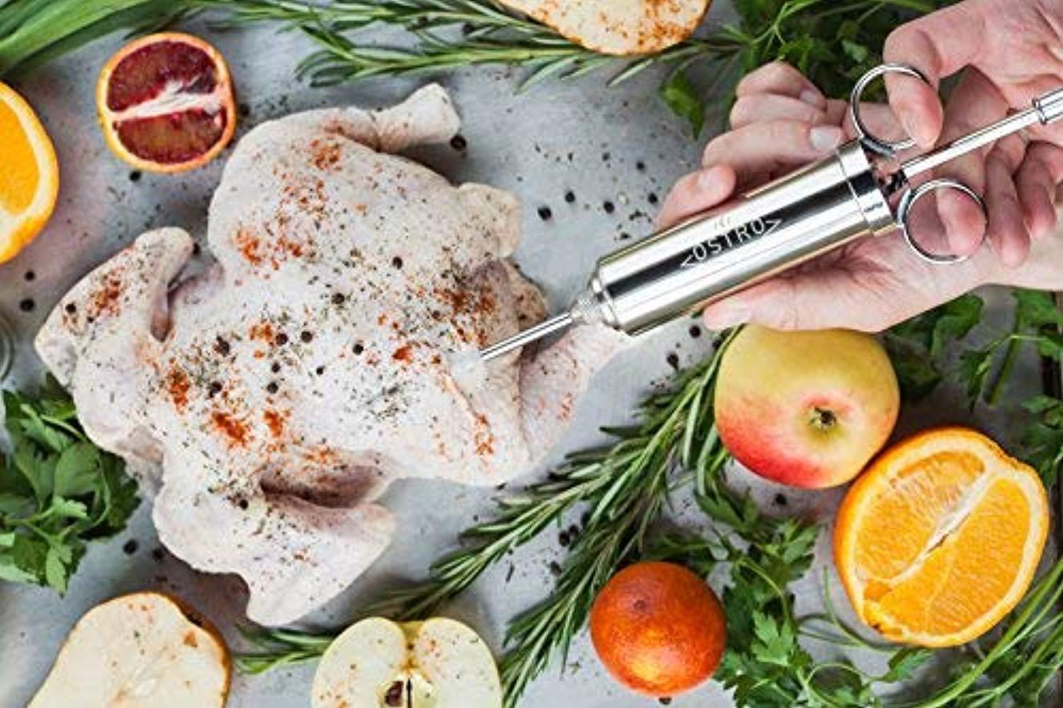 Meat Injector Kit Stainless Steel Marinade Flavor Injector Syringe with 2-oz Capacity Barrel and 3 Professional Marinade Injector Needles