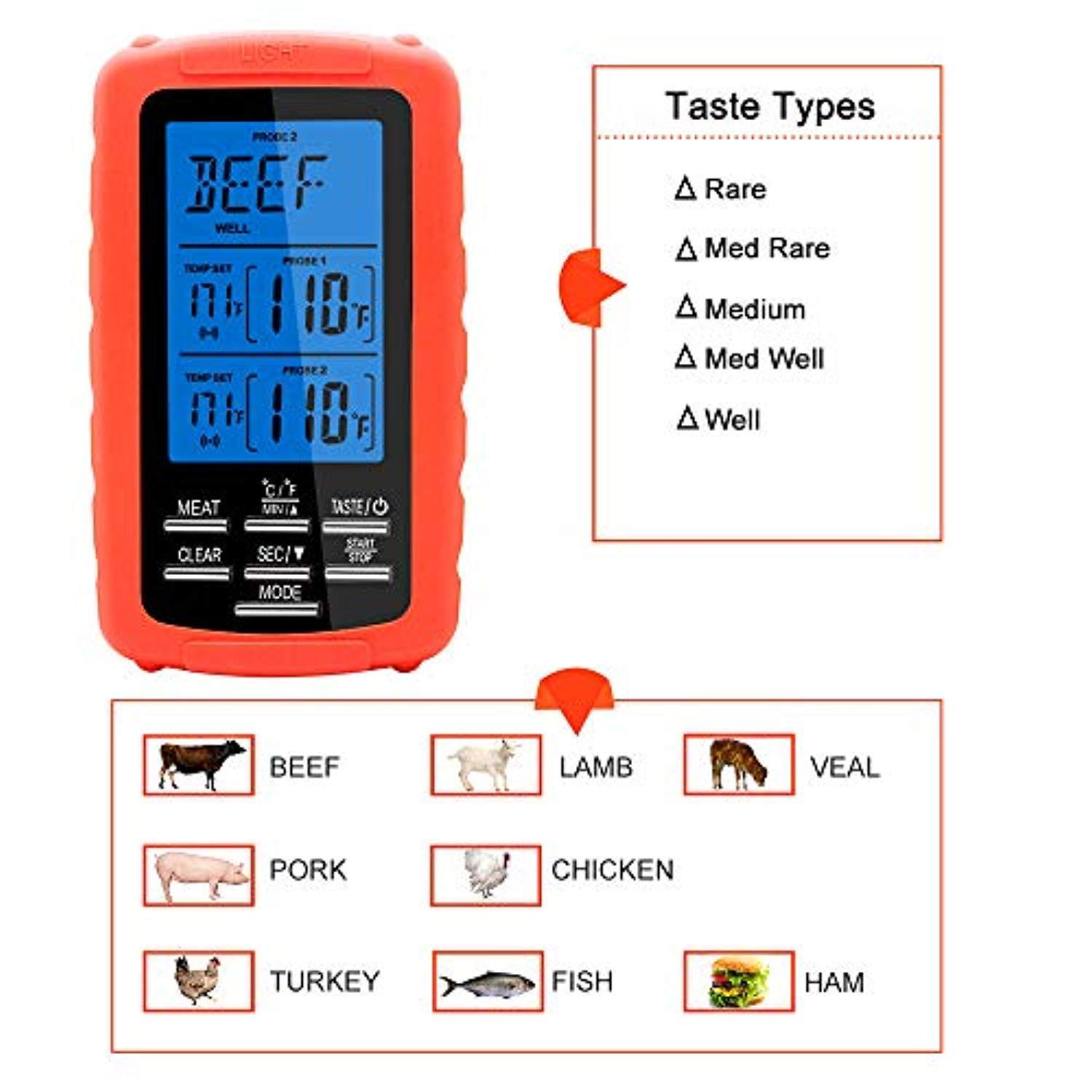 Meat Thermometer Digital Grill Oven or Smoker Remote Food Thermometer, Wireless Remote Digital Cook Food Thermometer with Dual Probe for Grill Thermometer, BBQ Thermometer for Outdoor Oven Kitchen