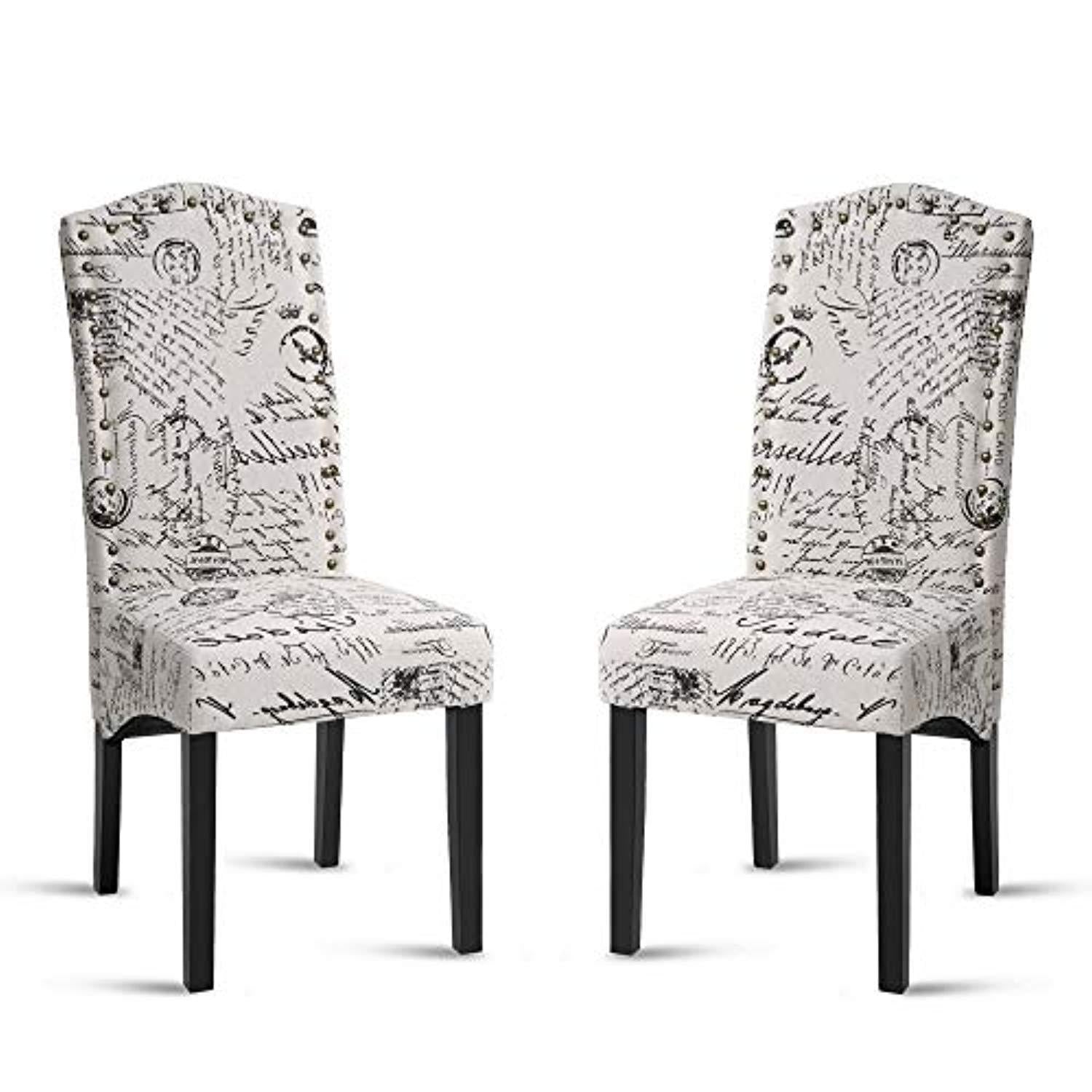Merax Script Fabric Accent Chair Dining Room Chair with Solid Wood Legs, Beige,Set of 2