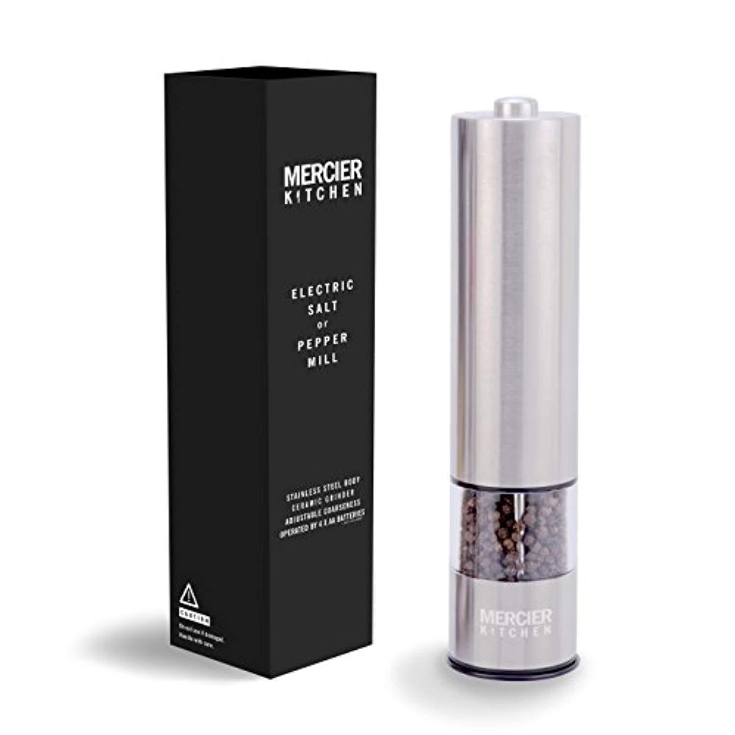 MERCIER Automatic Electric Salt or Pepper Grinder Mill, Battery Powered with LED Light At Bottom