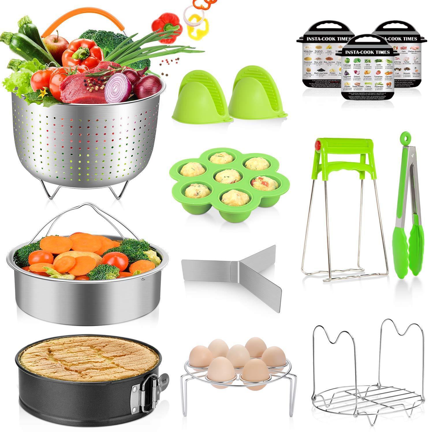MIBOTE 14 Pcs Accessories Set Compatible with Instant Pot 5,6,8 Qt - Steamer Baskets, Springform Pan, Egg Steamer Rack, Egg Bites Mold, Dish Plate Clip, Kitchen Tong, Oven Mitts, Magnetic Cheat Sheets