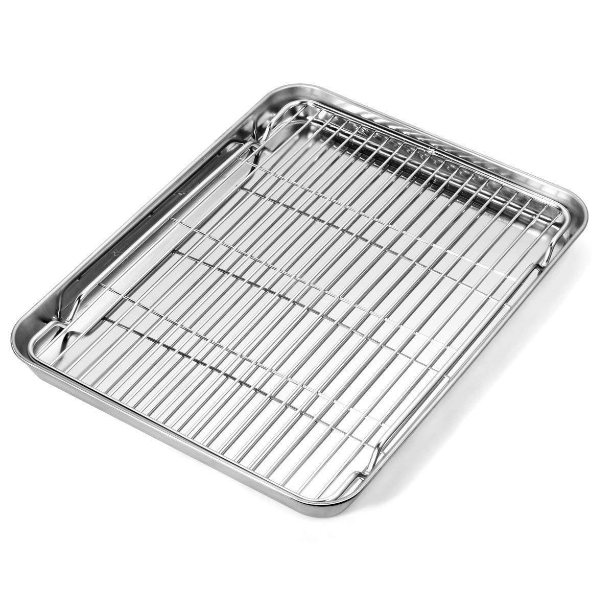 Mike pups Baking Sheets Rack Set, Cookie pan Nonstick Cooling Rack & Cookie Sheets Rectangle Size 12 x 10 x 1 inch,Stainless Steel & Non Toxic & Healthy,Superior Mirror Finish & Easy Clean (12101) by uknown