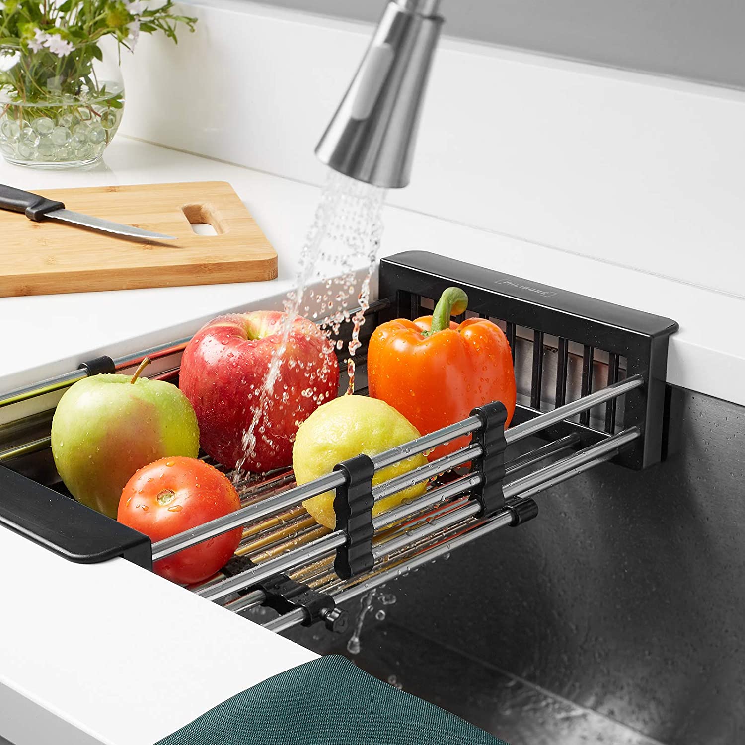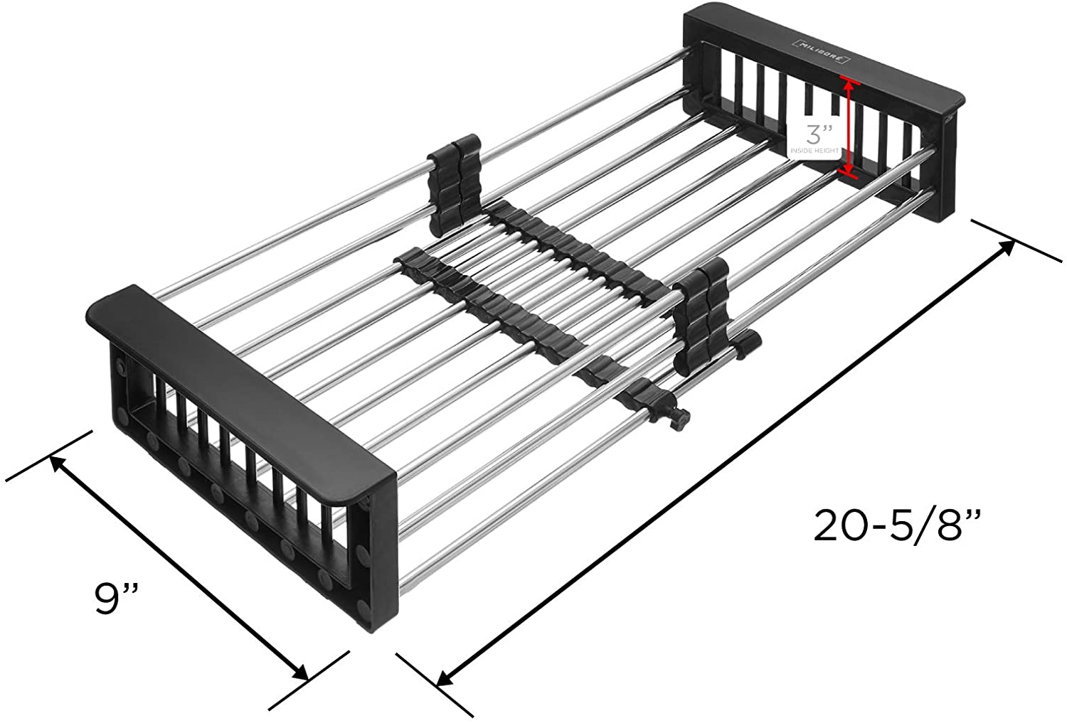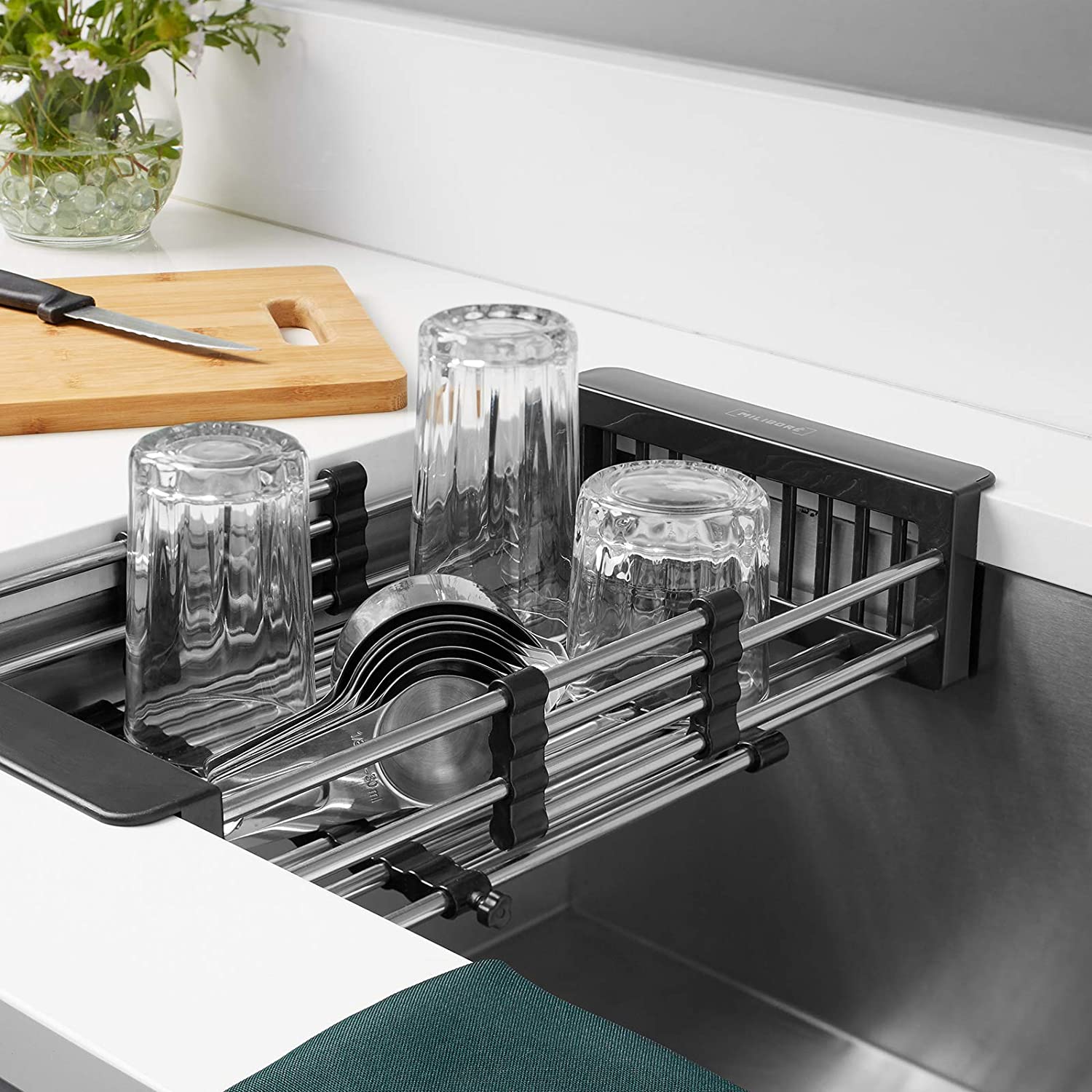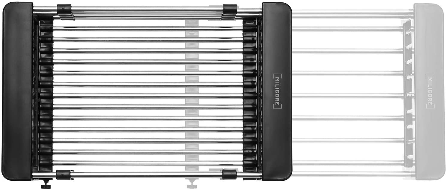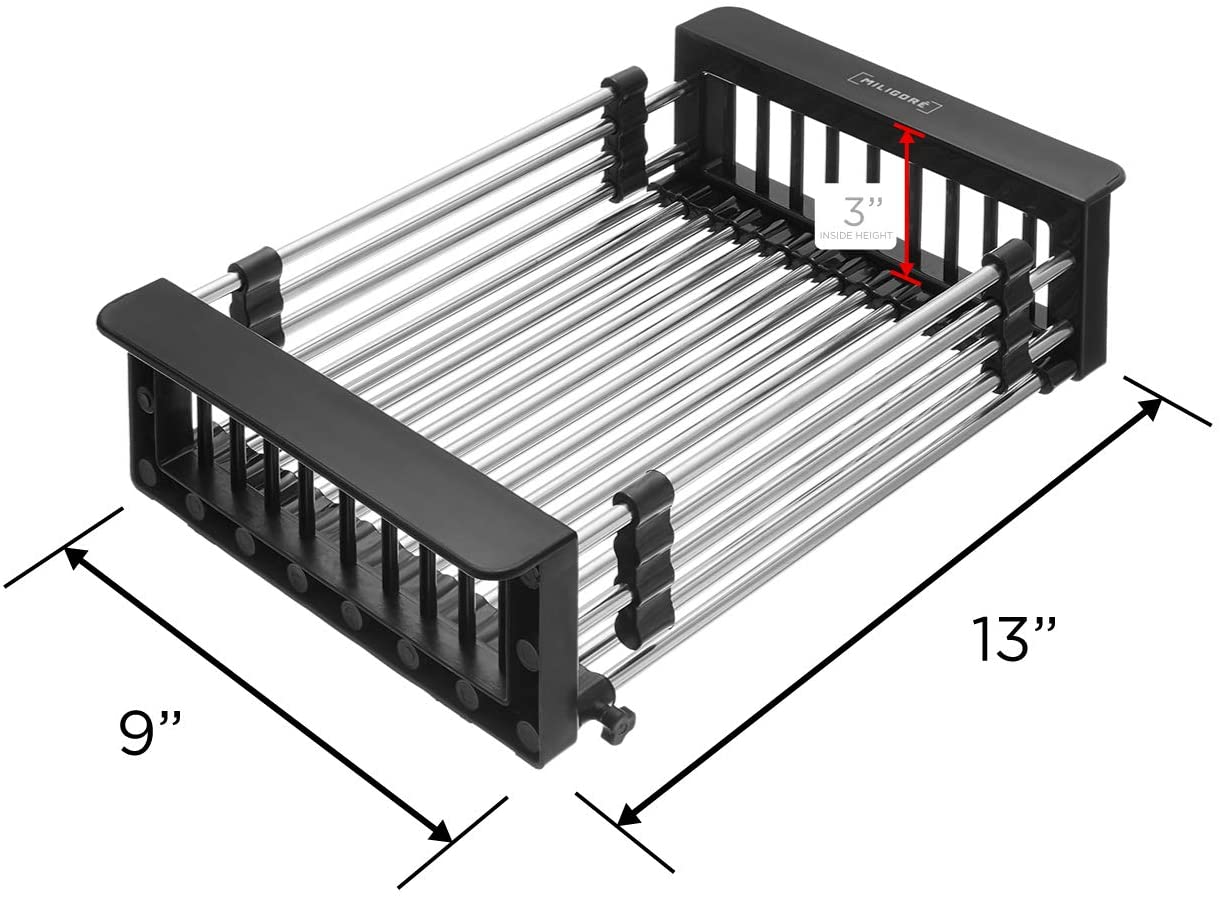 Miligore Expandable Over The Sink Dish Drying Rack, Stainless Steel Kitchen Sink Organizer Basket, Black