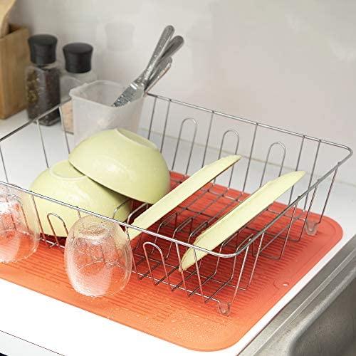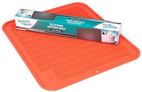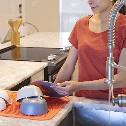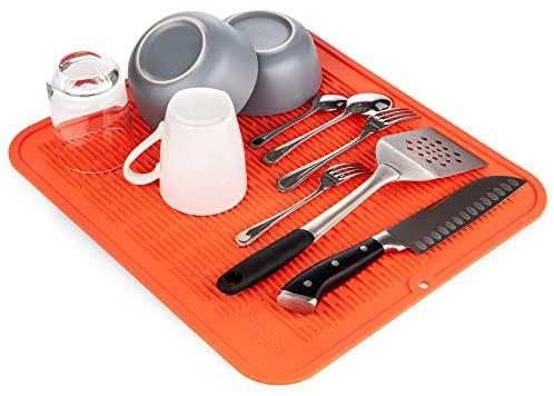 ANTI-SLIP: The texture and structure of the silicone drying mat provide a rubbery texture that assures a firm grip on dishware. The anti-slip dish drainer pad will hug your flatware and glasses securely to safeguard against sliding.