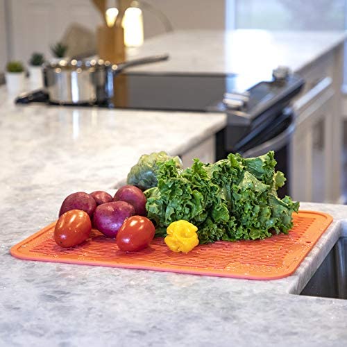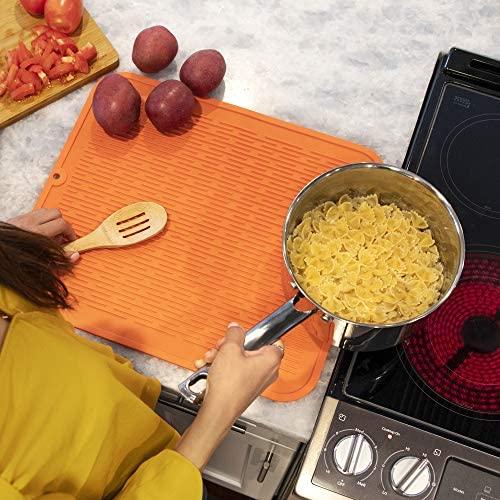 WATERPROOF: Designed with a water channeling system that helps spare water drain from cleaned dishes, the waterproof dish mat, has a 5mm high wide edge that keeps excess water from spilling over creating a mess in your kitchen.